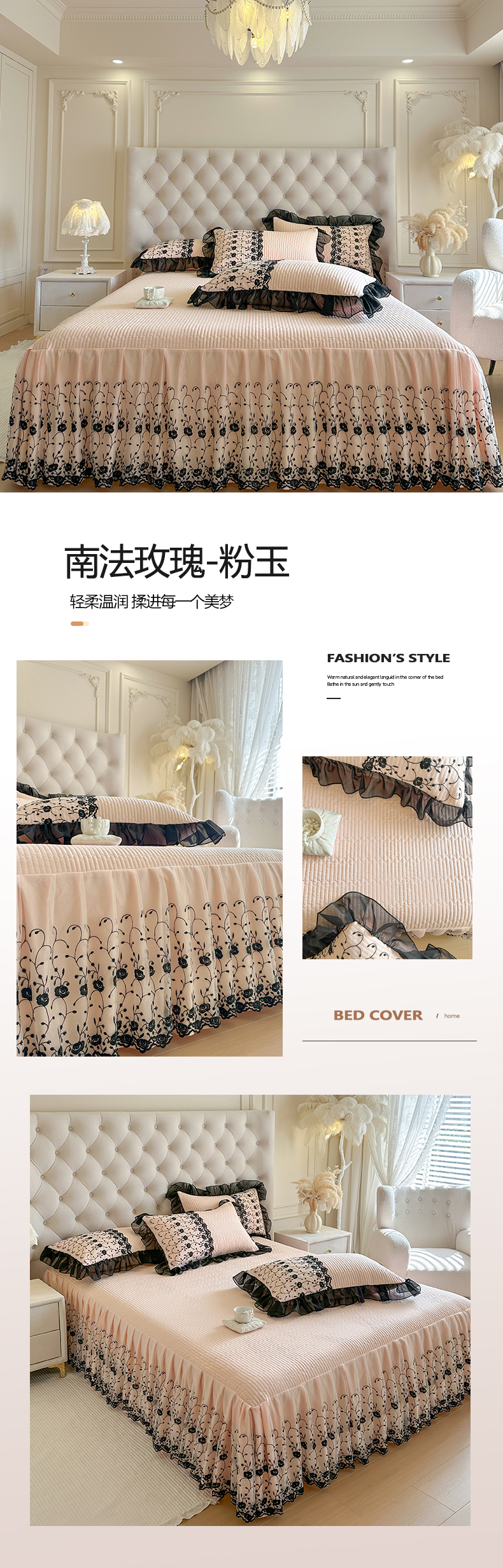 • 91家纺网 家纺一手货源 找家纺 (总)瑞宝 2026新款泡芙棉花边床裙四件套-南法玫瑰,南法玫瑰-粉玉,南法玫瑰-梦幻紫,南法玫瑰-樱花粉,南法玫瑰-雾蓝,南法玫瑰-奶油白,南法玫瑰-抹茶绿,南法玫瑰-奶茶色,南法玫瑰-高级米