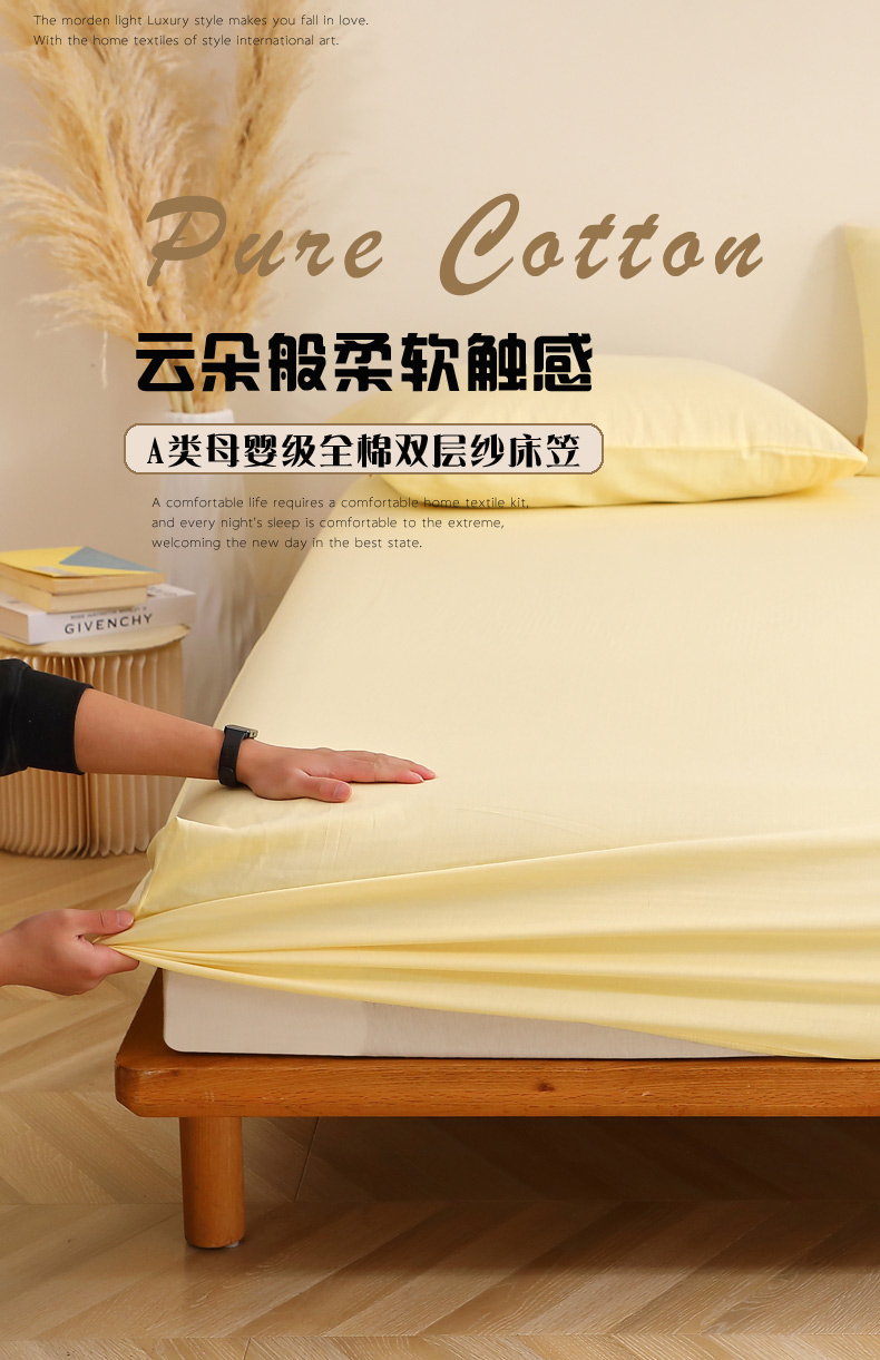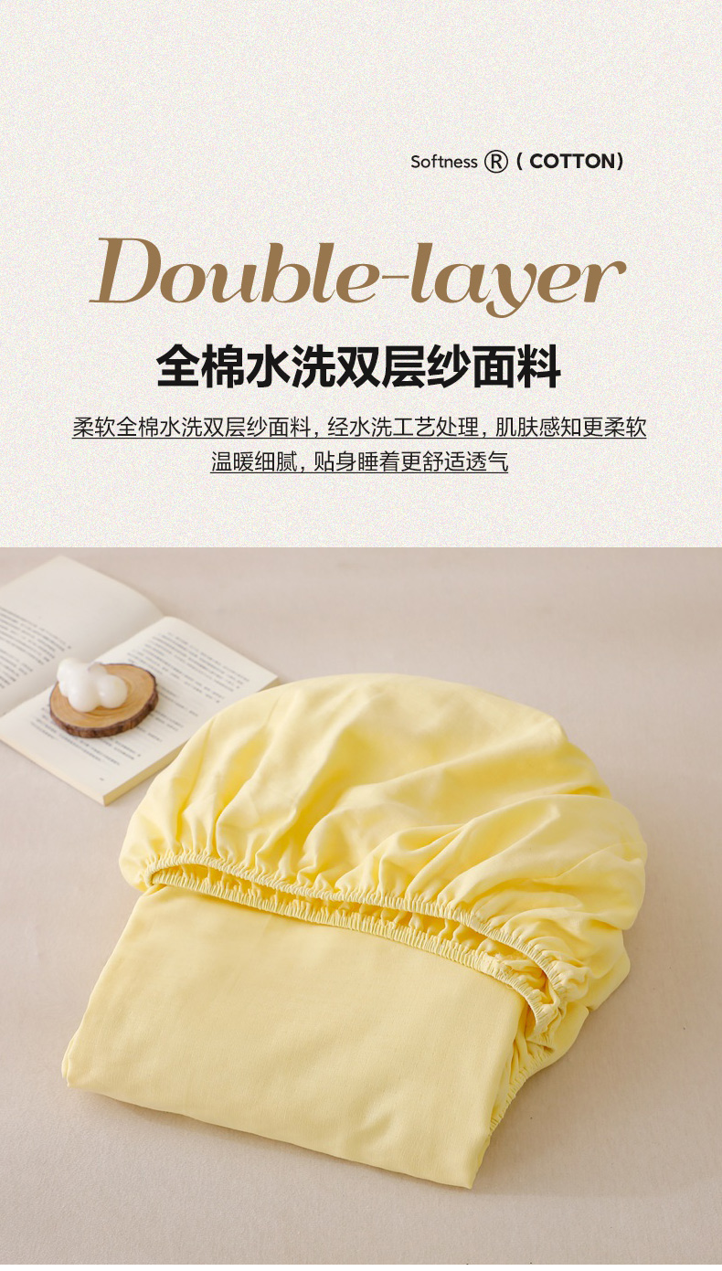 晶缦家纺 2026新款纯棉纯色A类全棉双层纱单品床笠床笠单件单床笠(水洗预处理)-觅琳系列 觅琳-浅蜜黄