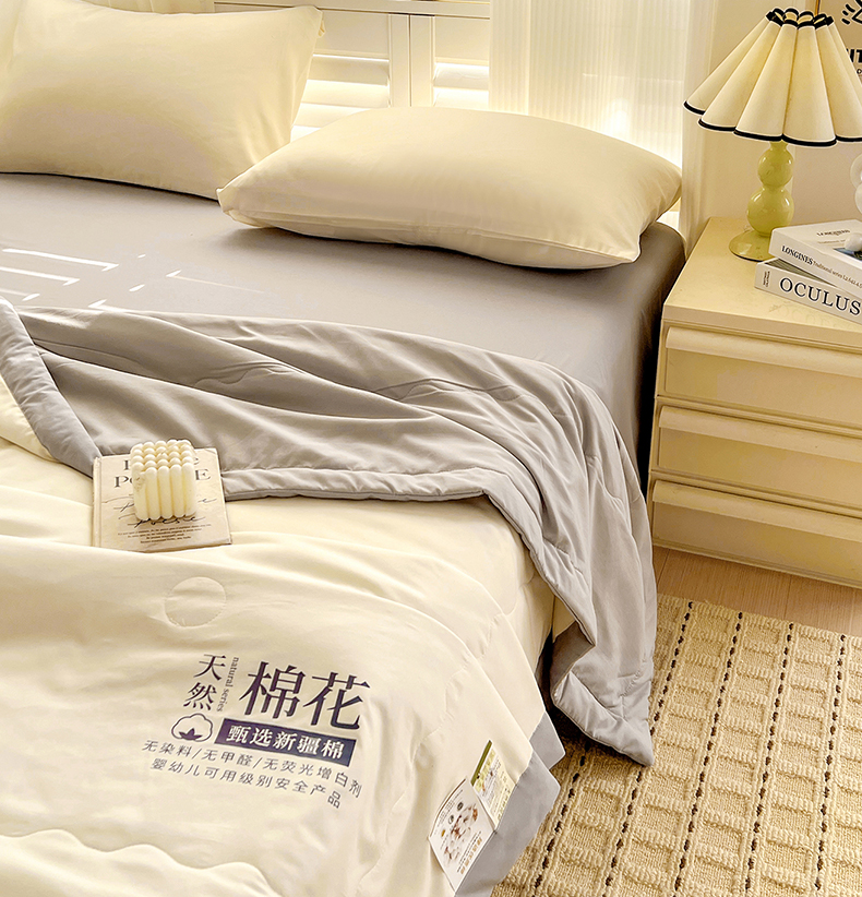 易展家居 2026新款水洗棉新疆棉花夏被-棉花2 棉花-白拼灰
