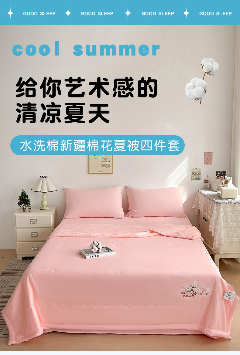 商品名称:易展家居 2026新款水洗棉新疆棉花夏被-棉花 棉花-粉色