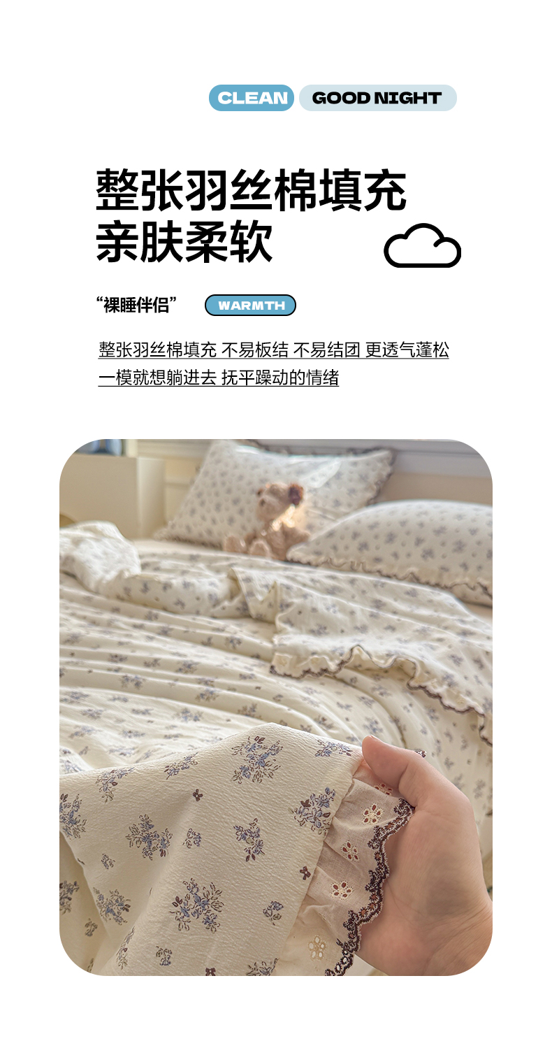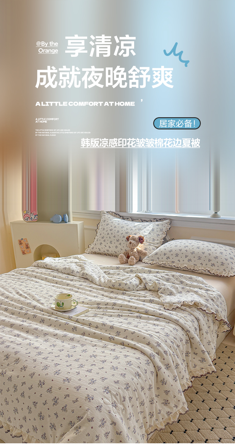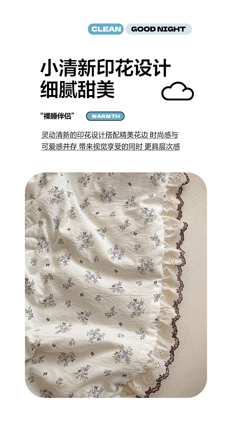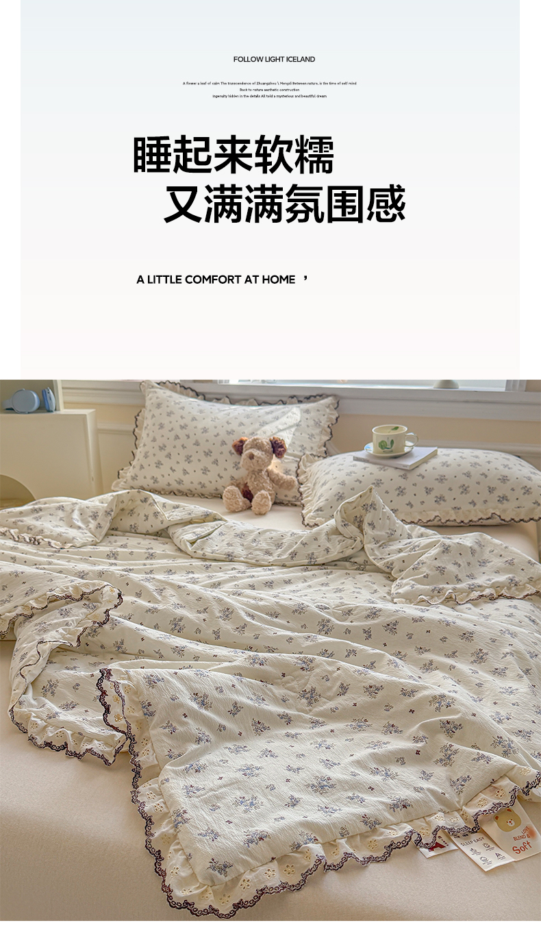 商品名称:鑫贝阳 2026新款韩版花边邹邹绵夏被 碎碎小碎花