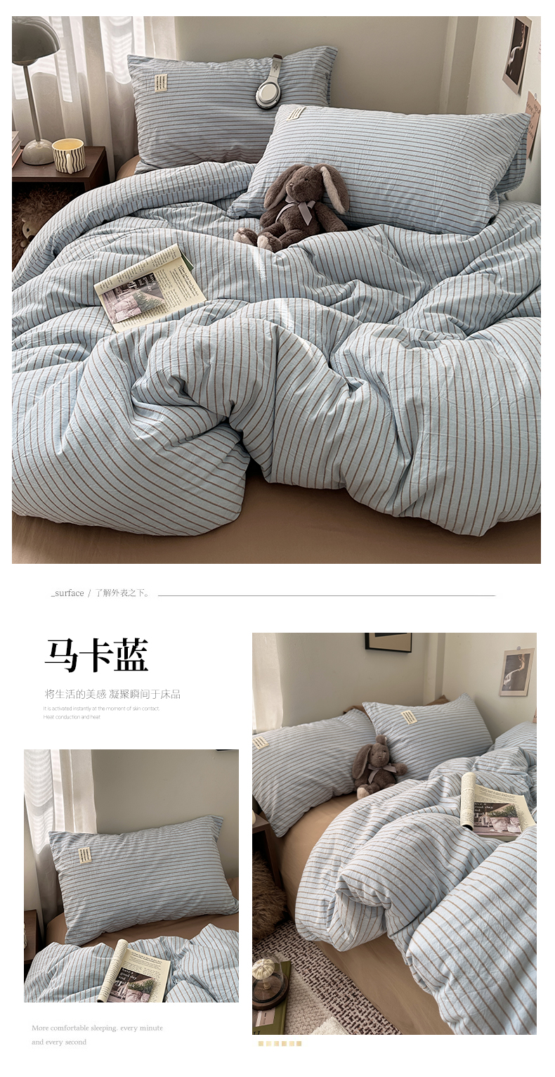 (总)艾咪-Amy ntmy 2026新款布标条纹款全棉纯棉色织水洗棉四件套,焦糖条,蓝灰条,马卡黄,马卡灰,马卡蓝,马卡紫,普蓝条,咖细条,新粉条,新蓝条,告白-粉条,告白-蓝条,告白-绿条,告白-米条
