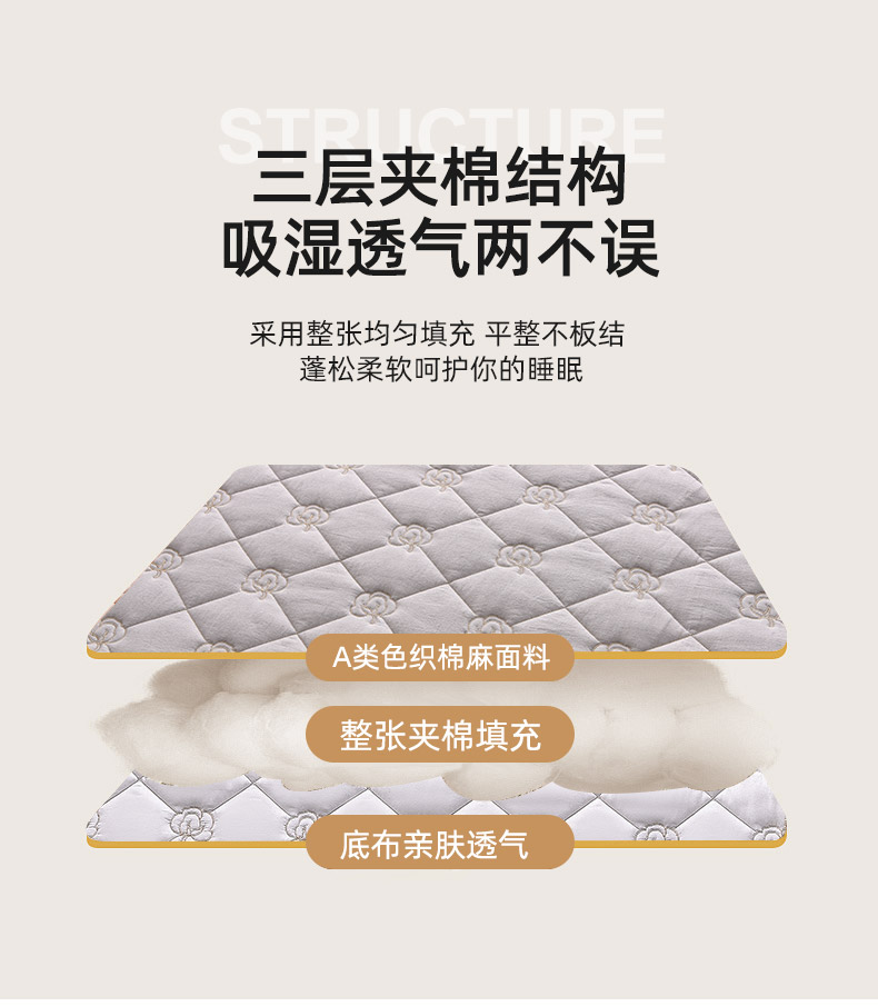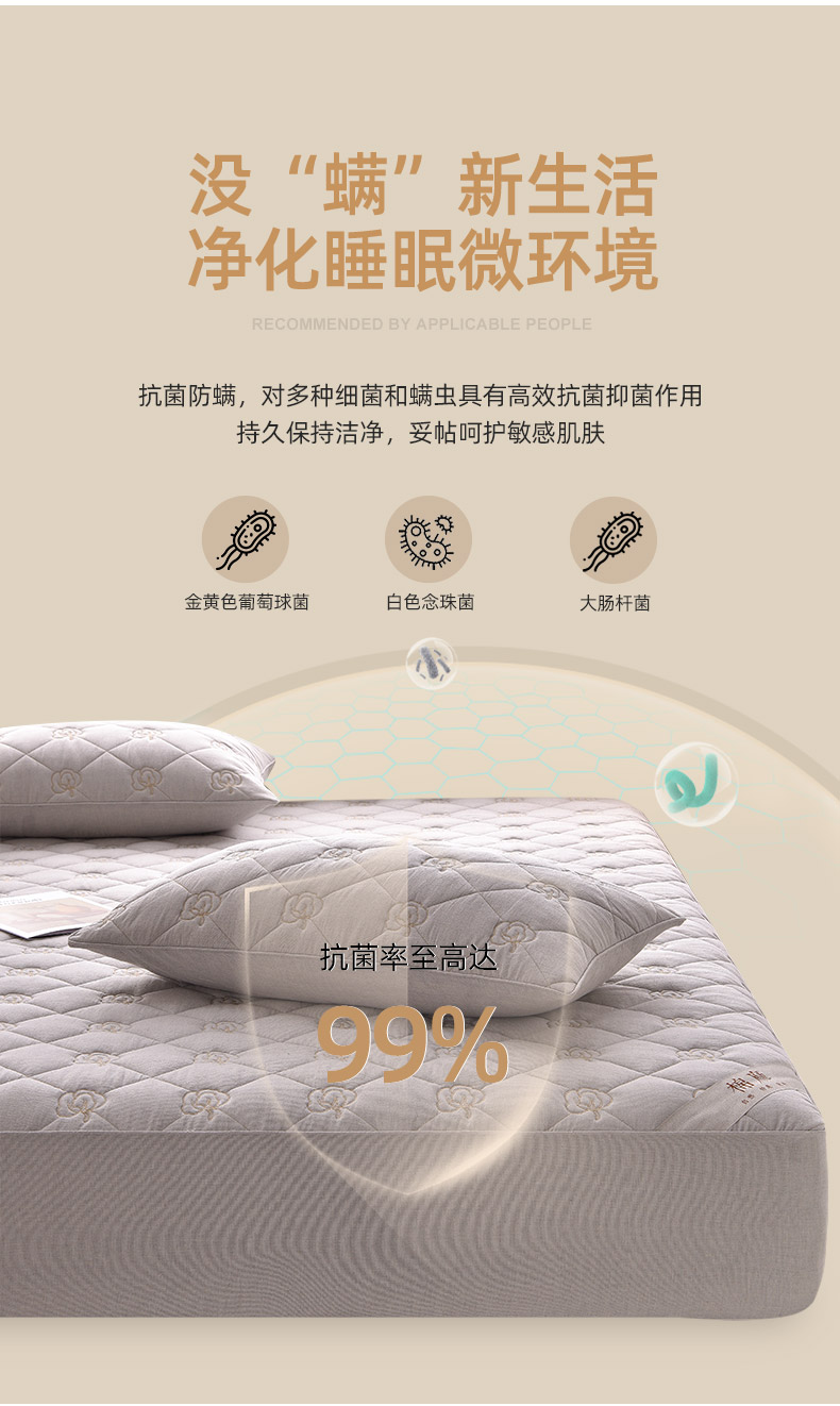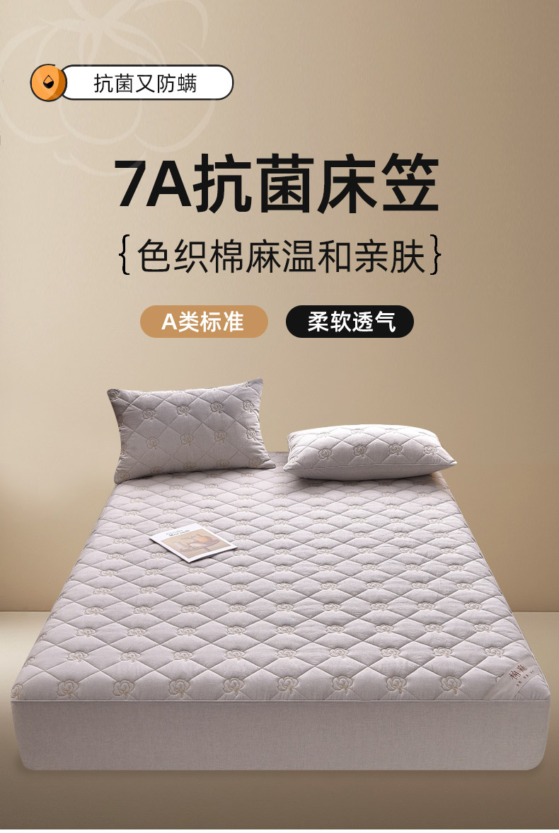 (总)好眠好梦家纺 2025新款全棉50S夹棉抗菌防螨床笠-棉生活系列,白色,粉色,卡其,深灰,天蓝,烟灰