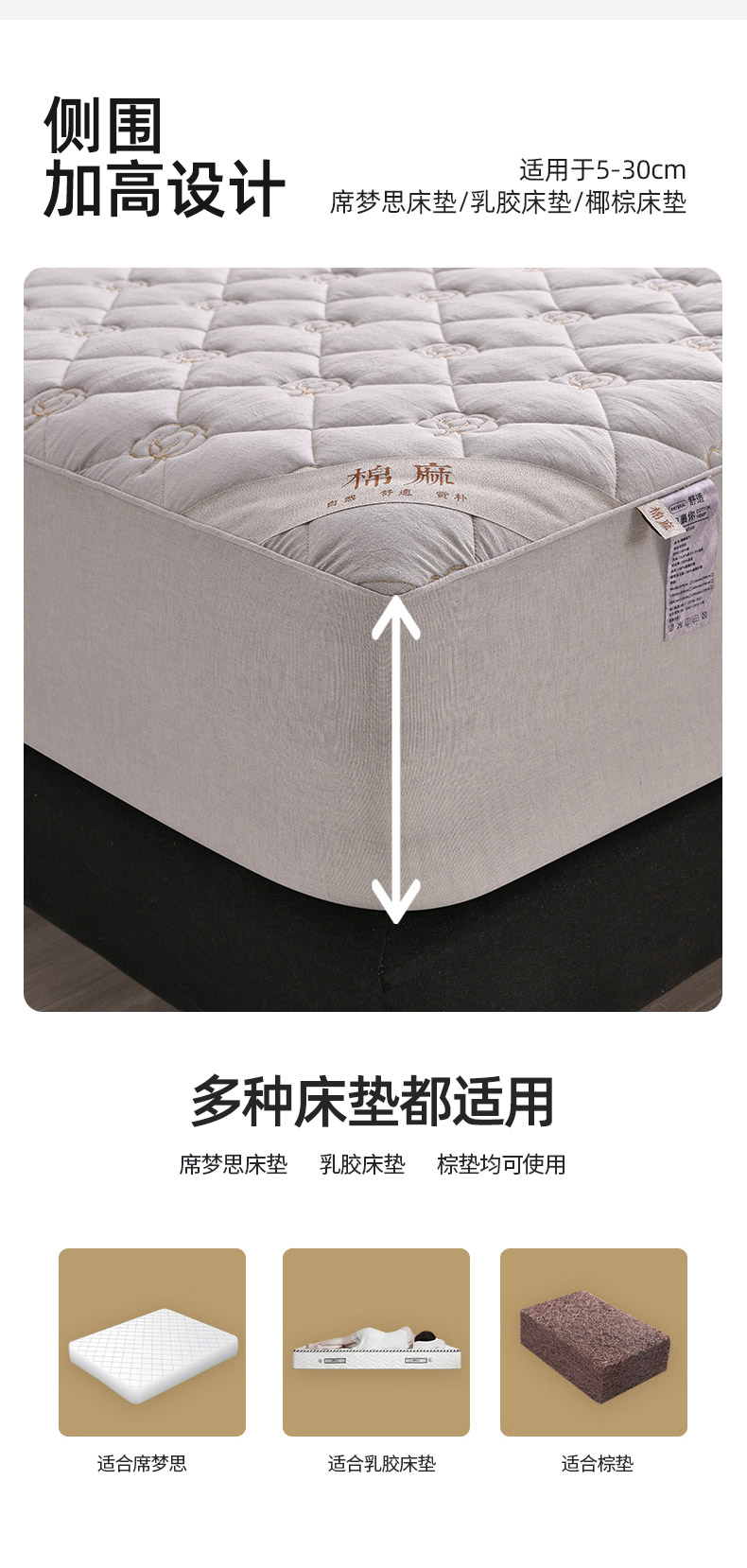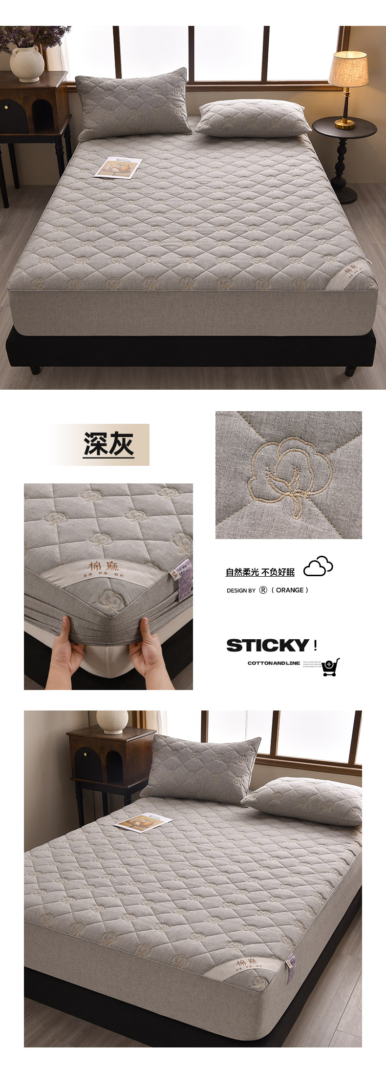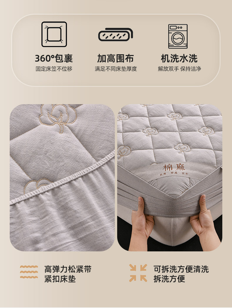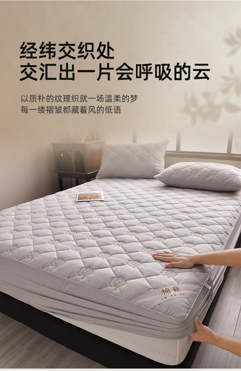 • 91家纺网 家纺一手货源 找家纺 (总)好眠好梦家纺 2025新款全棉50S夹棉抗菌防螨床笠-棉生活系列,白色,粉色,卡其,深灰,天蓝,烟灰