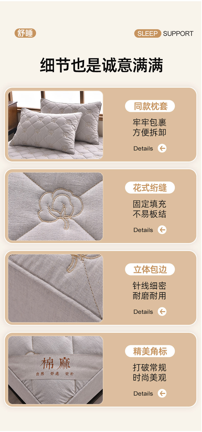 • 91家纺网 家纺一手货源 找家纺 好眠好梦家纺 2026新款全棉纯棉棉麻抗菌防螨床笠 棉之语-浅灰