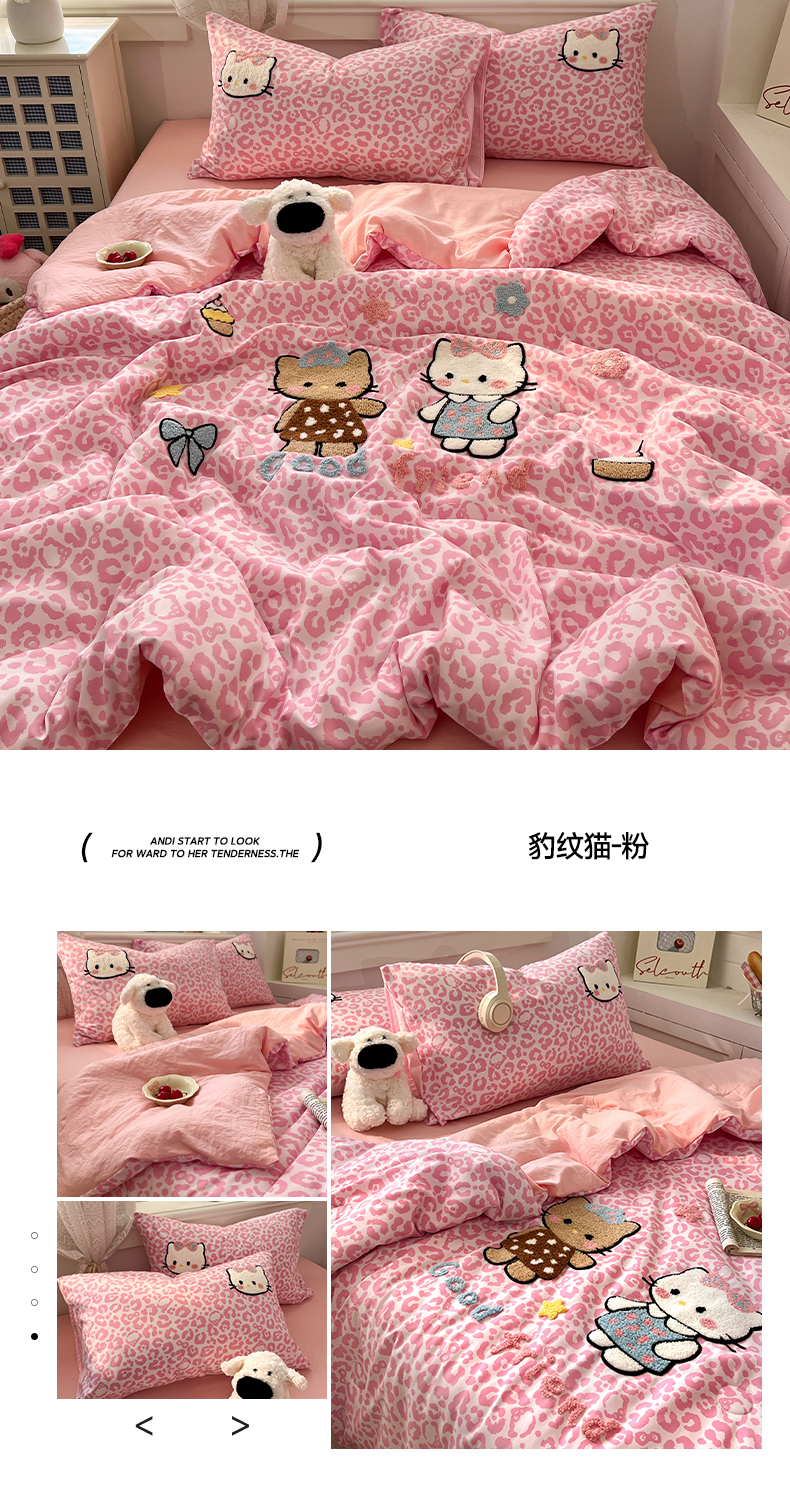 当前位置: 91家纺网 > 商品网购 > 床品套件 > 四件套 > 水洗棉四件套 > 易辰美 2026新款水洗棉毛巾绣夏被四件套 豹纹猫-粉
