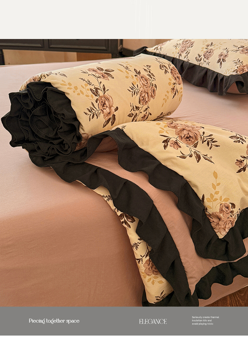 亿品2025新款直播爆款韩版赫本风高克重牛奶绒四件套床裙款 8.5斤(有买家秀加v) 花语,花语