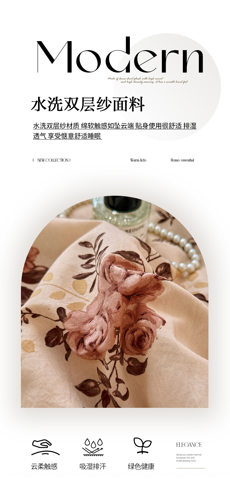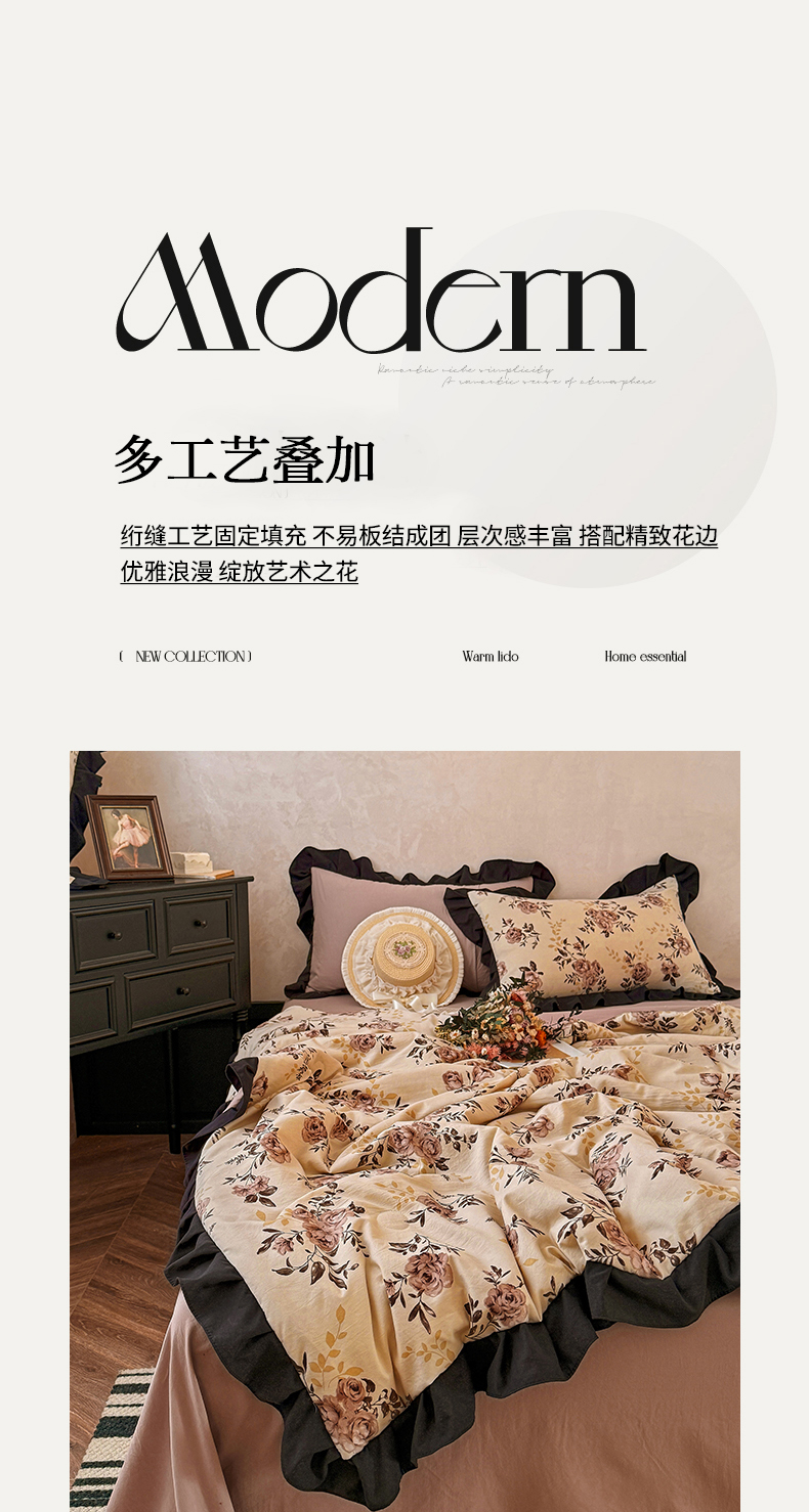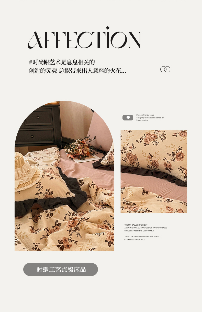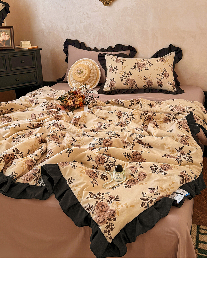 亿品家纺 2026直播爆款韩版赫本风花边款水洗双层纱夏被四件套【有买家秀加V】,茶墨,朵颜,蔷薇岛,山茶左岸,山奈,幸运,虞美人,组合图仅供展示