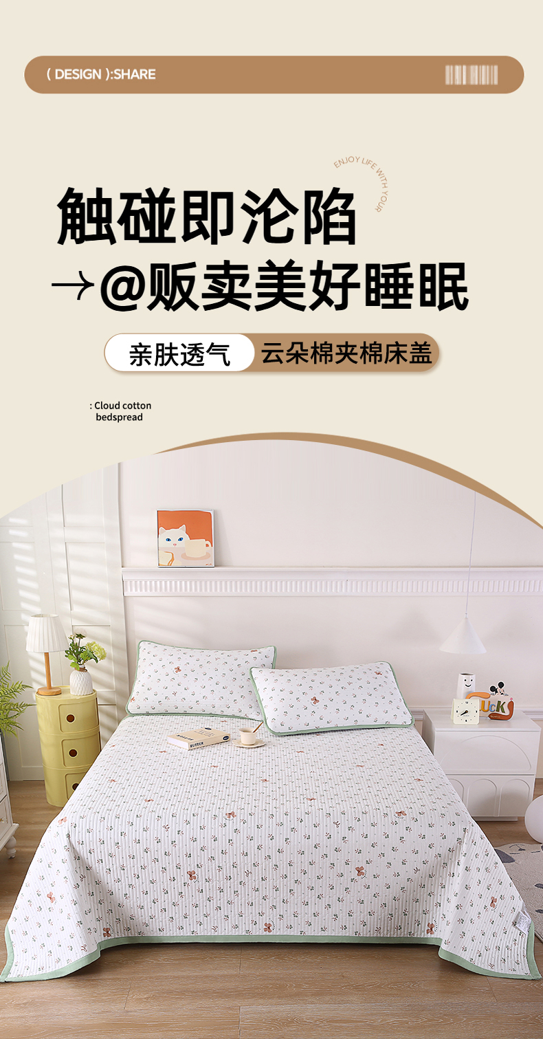 (总)欧朵家纺 2026新款云朵棉夹棉单床盖床盖单件,爱心蝴蝶结,半岛花园,蝴蝶结,流星雨,琉璃花畔,蘑菇花,小象,游乐园