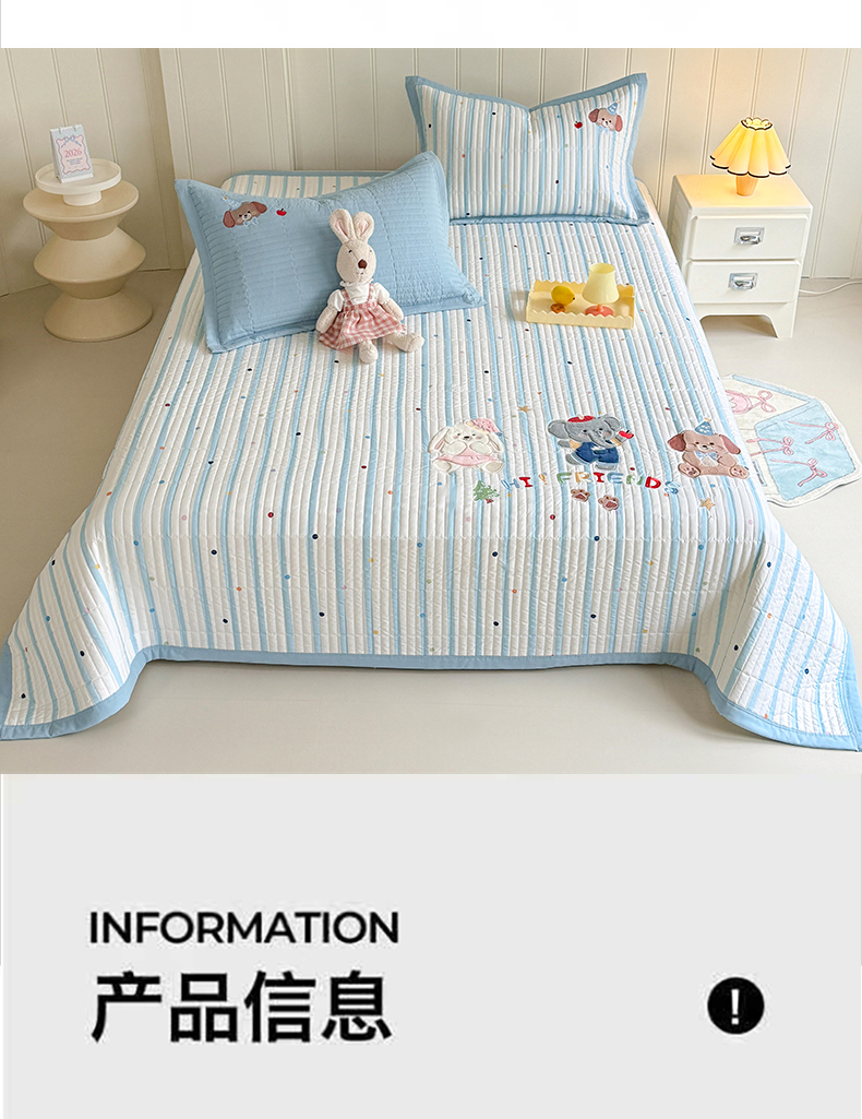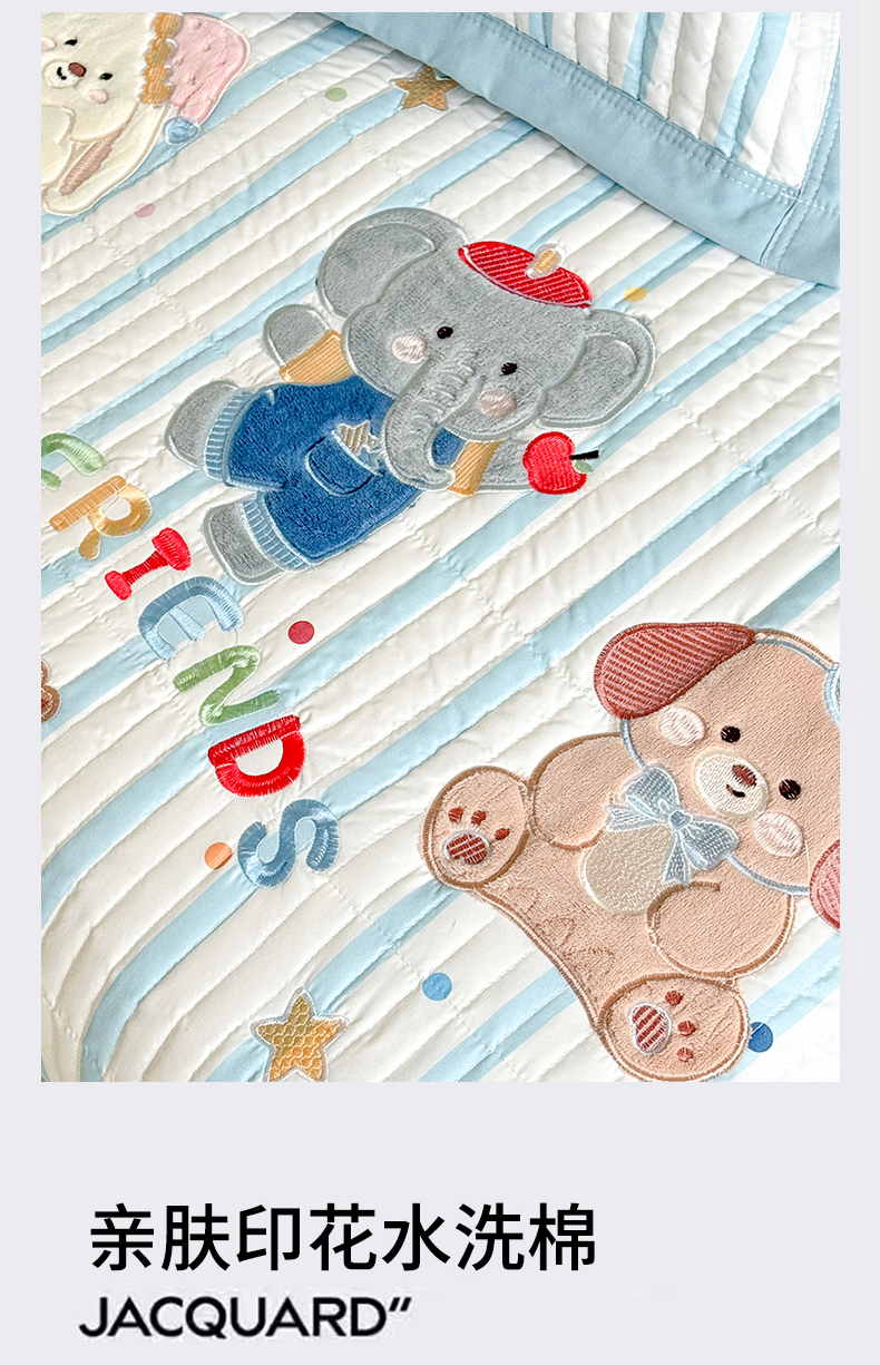 商品名称:绒棉世家 2026新款高克重水洗棉云感棉印+贴布绣卡通床盖夹棉软席三件套 组合图仅供展示