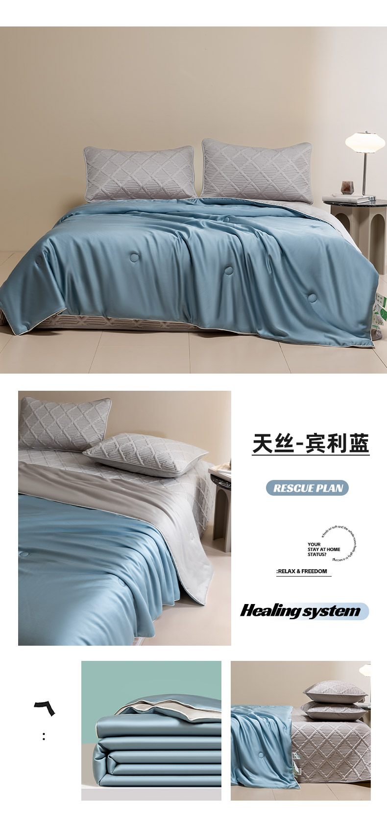 • 91家纺网 家纺一手货源 找家纺 吾诺家居 2026春夏新款双拼色莱赛尔天丝夏被夏凉被空调被-天纯系列 天丝-宾利蓝