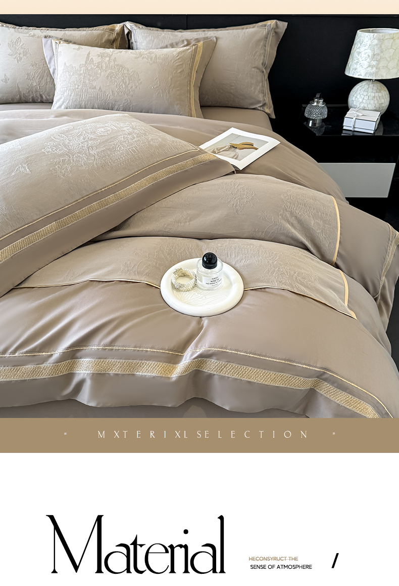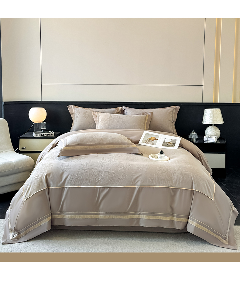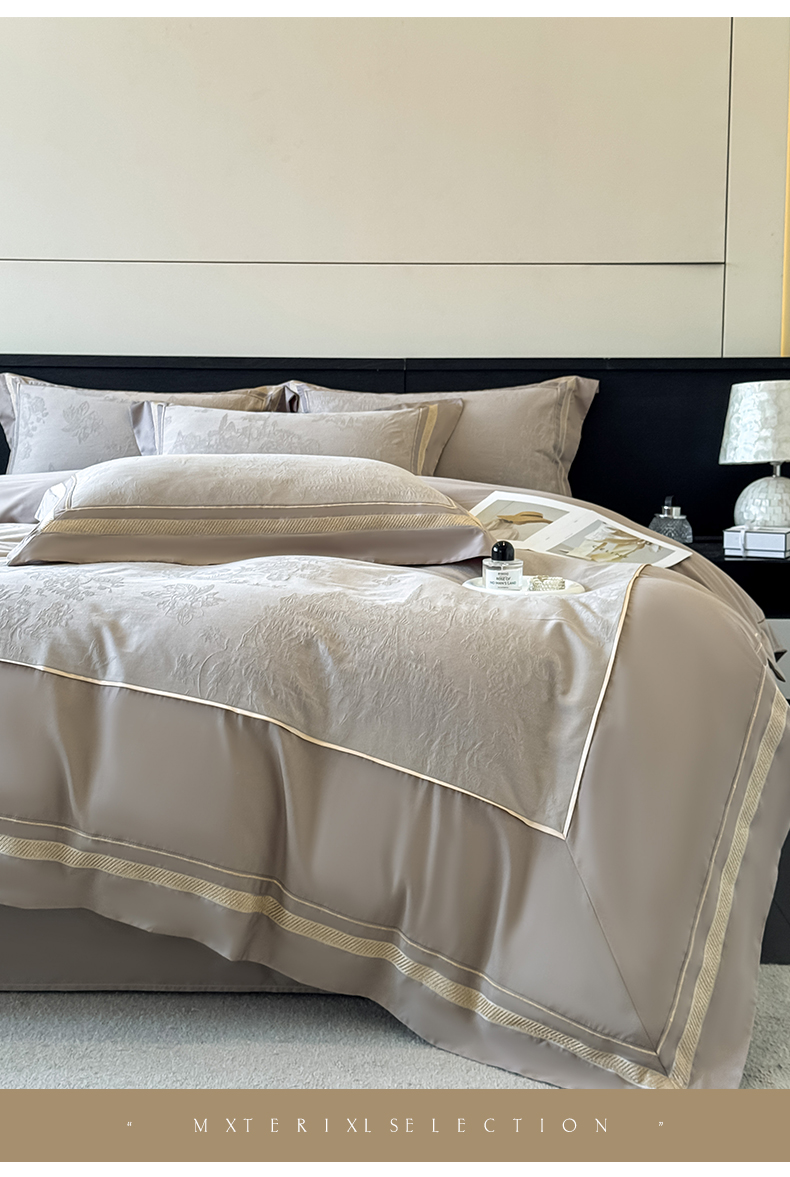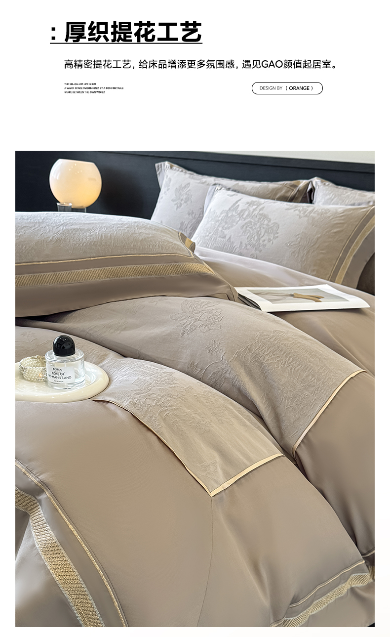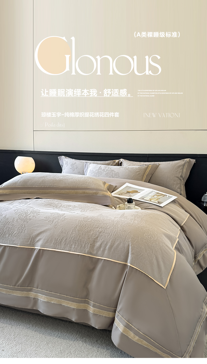 当前位置: 91家纺网 > 商品网购 > 床品套件 > 四件套 > 全棉普通四件套 > 博纳家纺 2026春夏新款60支全棉纯棉厚织提花绣花宽边高级简奢纯棉四件套-琼楼玉宇 琼楼玉宇-咖色