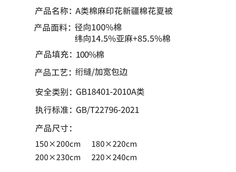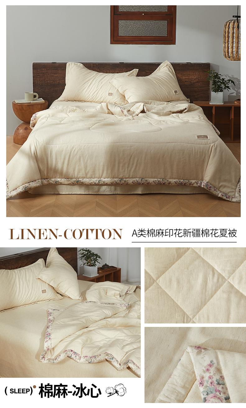 商品名称:西域种棉人·千百笠 2026新款A类棉麻新疆棉花夏被全棉纯棉单双人空调被夏凉被 棉麻-久野