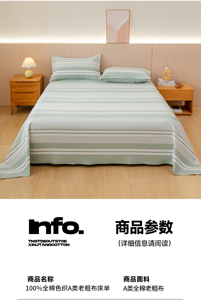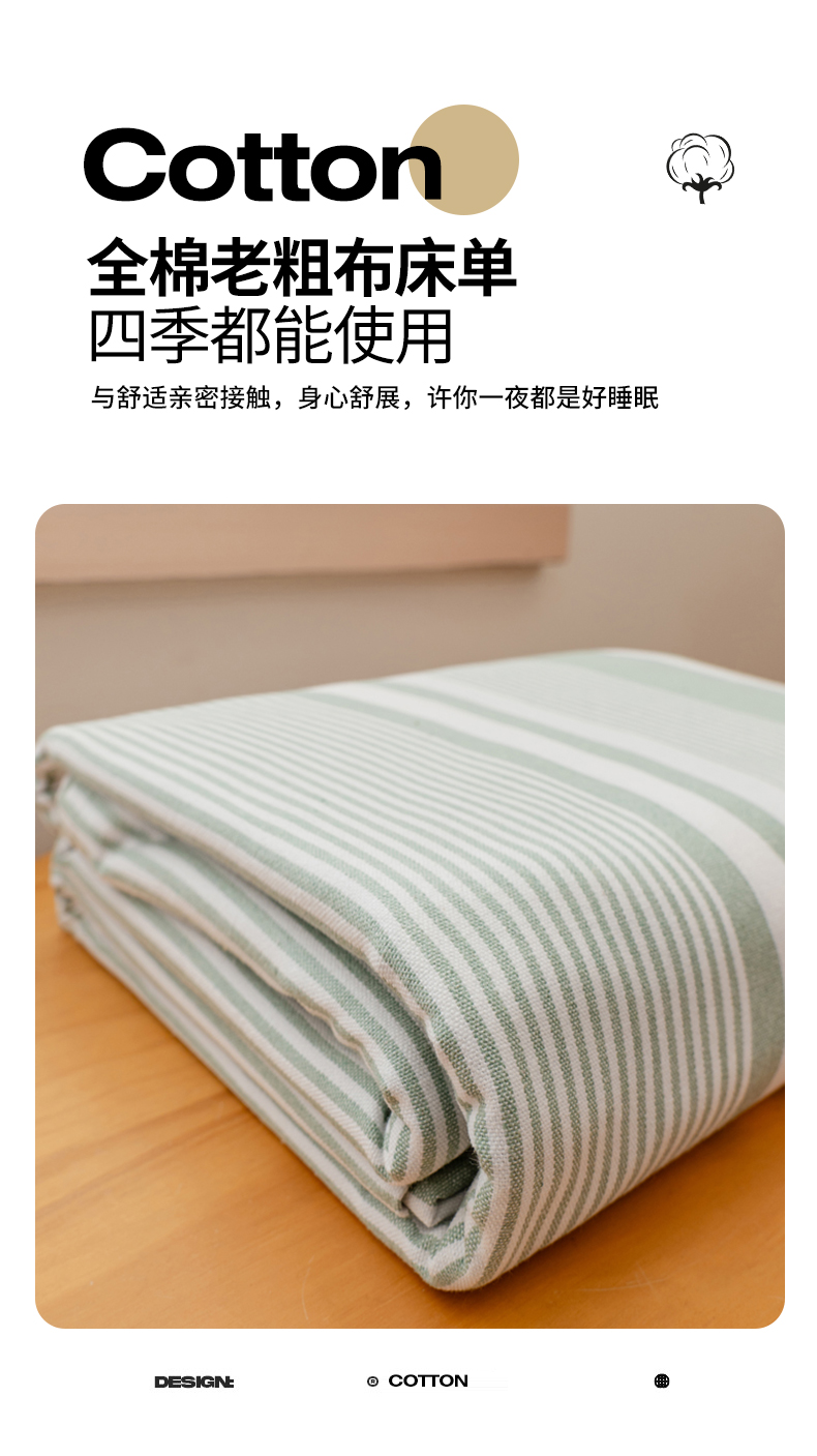 • 91家纺网 家纺一手货源 找家纺 居美良品 2026新款100%色织全棉老粗布床单 云锦-淡绿
