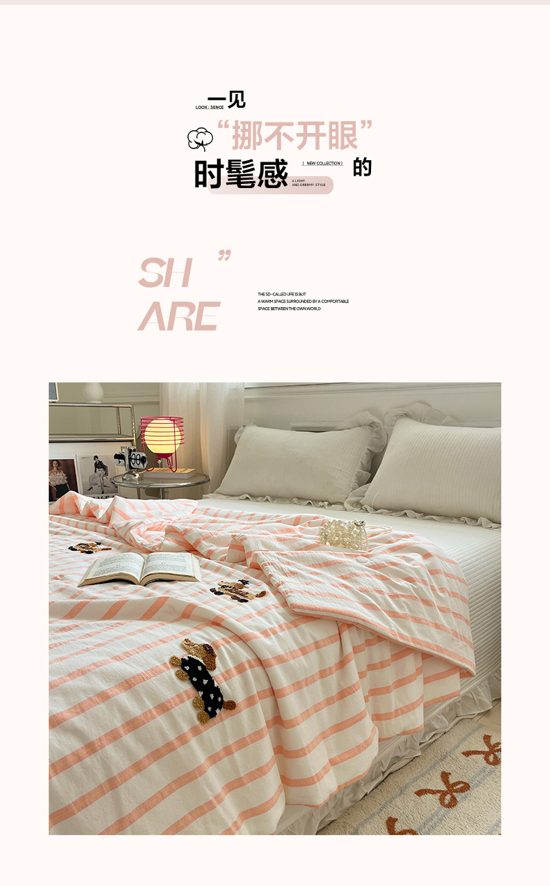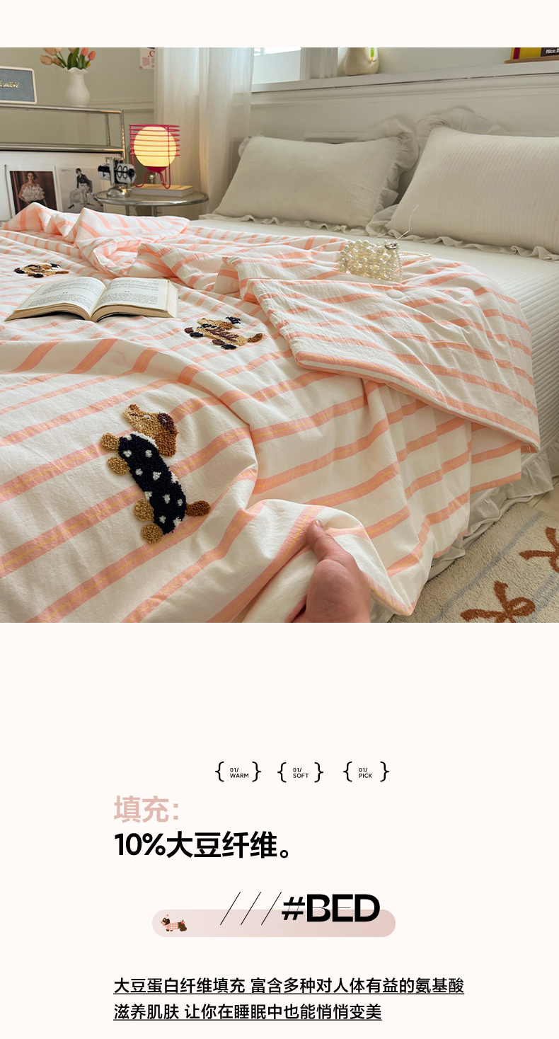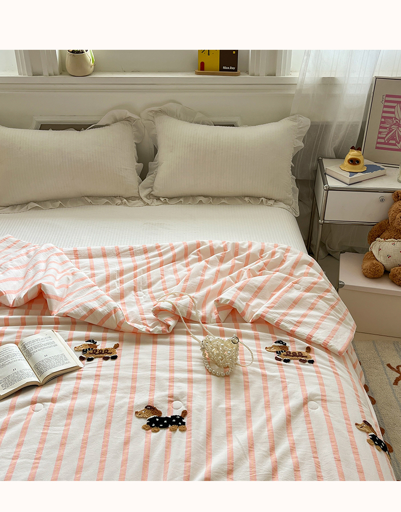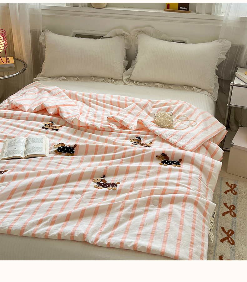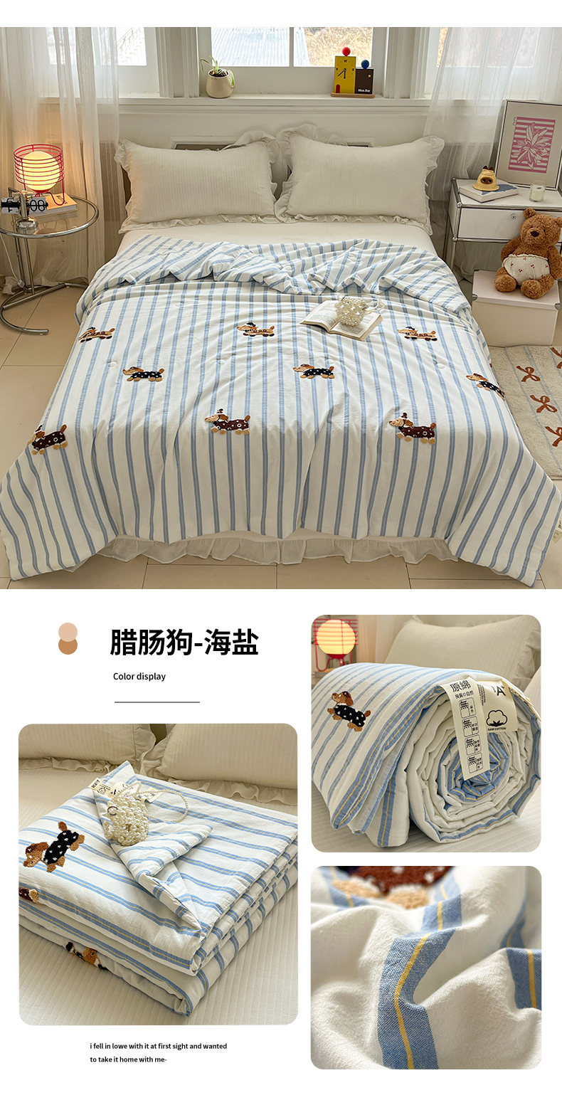 (总)一加一 2026新款全棉色织水洗棉毛巾绣大豆夏被夏凉被空调被-腊肠狗,腊肠狗-粉条,腊肠狗-海盐,腊肠狗-灰条,腊肠狗-蓝调,腊肠狗-奶白,腊肠狗-樱花