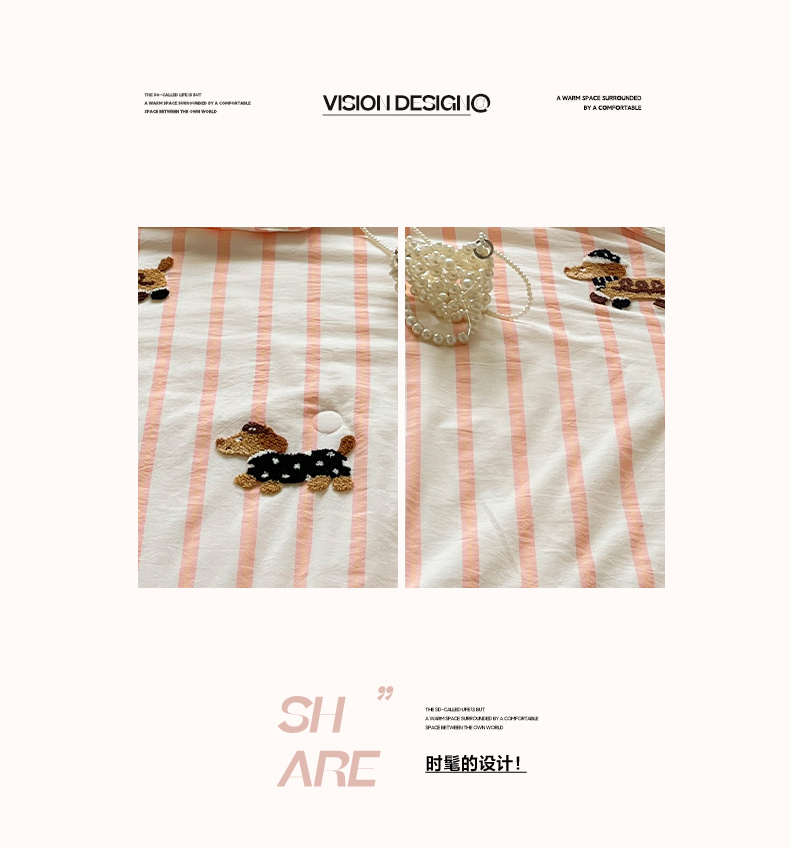商品名称:一加一 2026新款全棉色织水洗棉毛巾绣大豆夏被夏凉被空调被-腊肠狗 腊肠狗-粉条