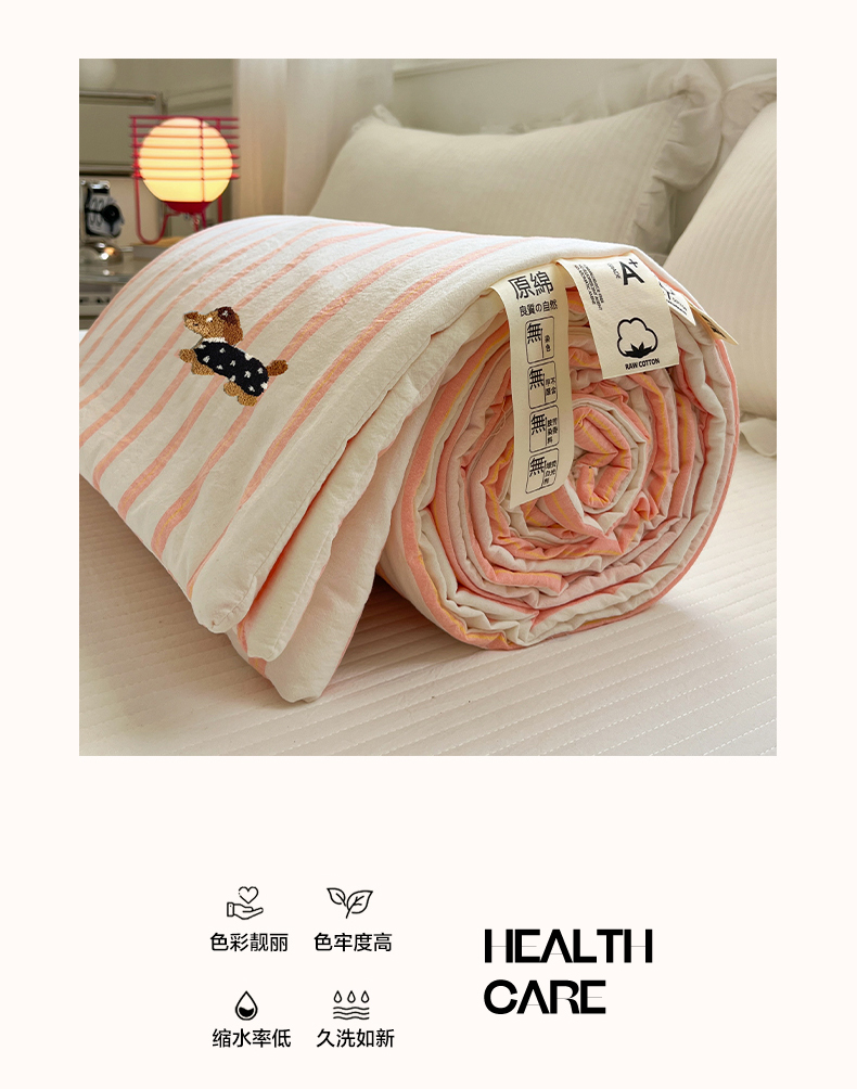 (总)一加一 2025新款全棉色织简约风艾阳绒抗菌被芯,浅兰韵律,桃之夭天,悠然时光