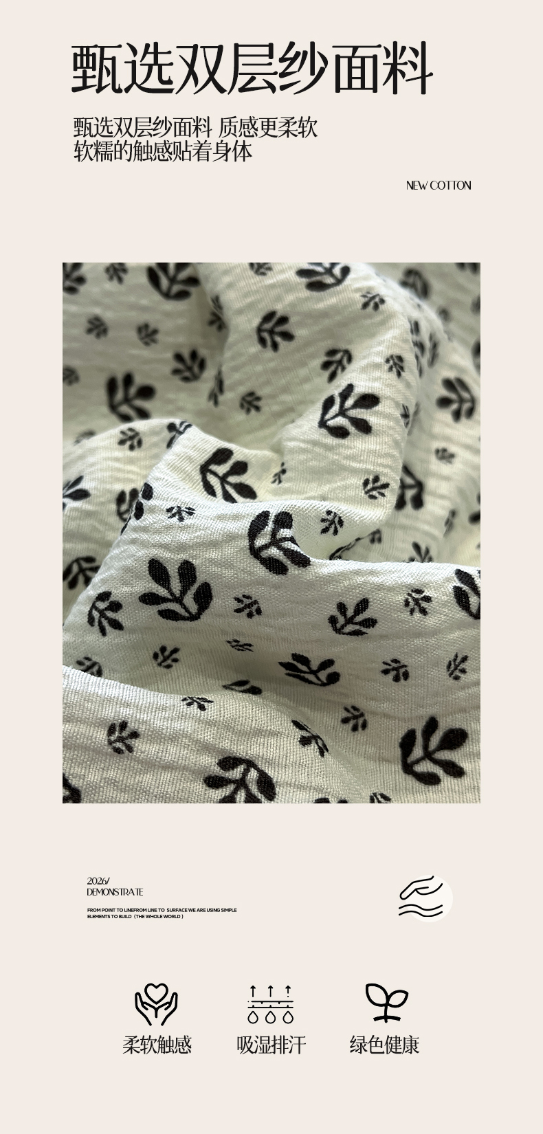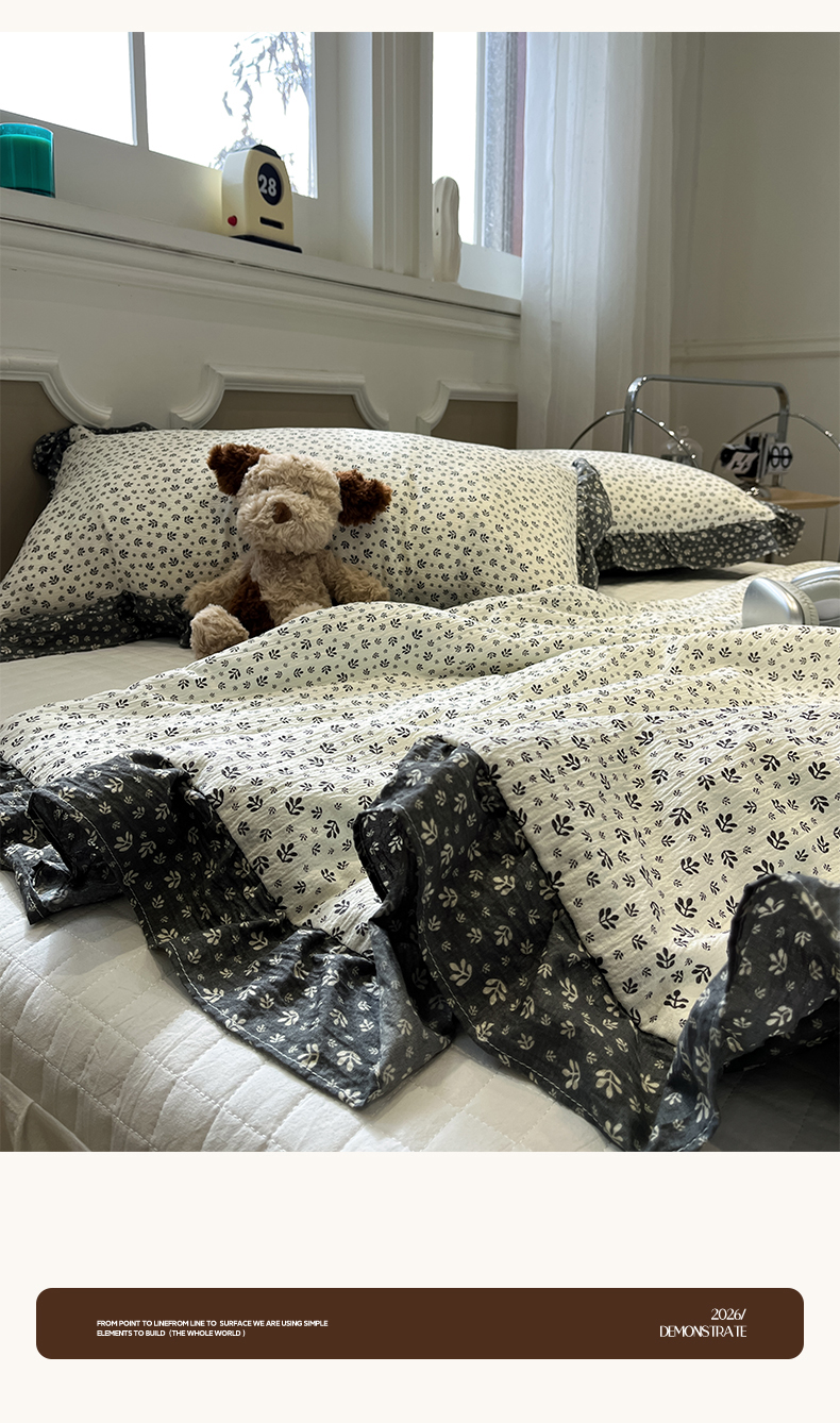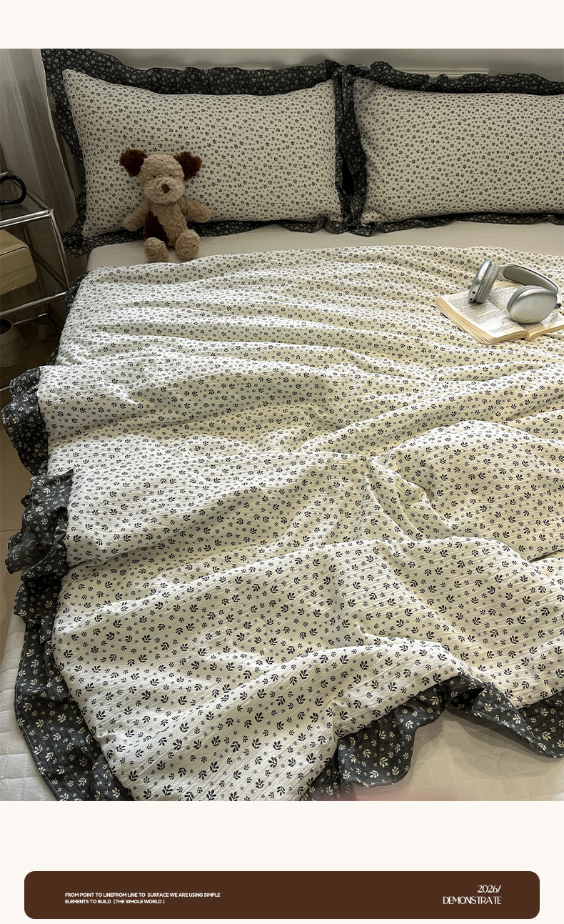 商品名称:一加一 2026新款复古碎花双层纱大豆夏被夏凉被空调被-纱边花眠 叶影