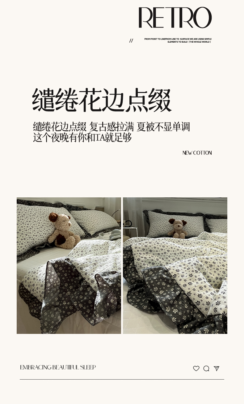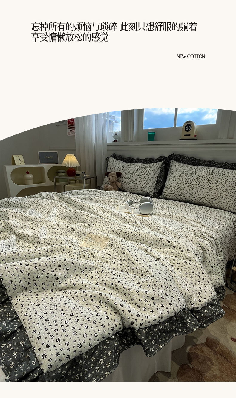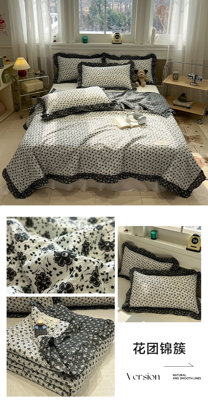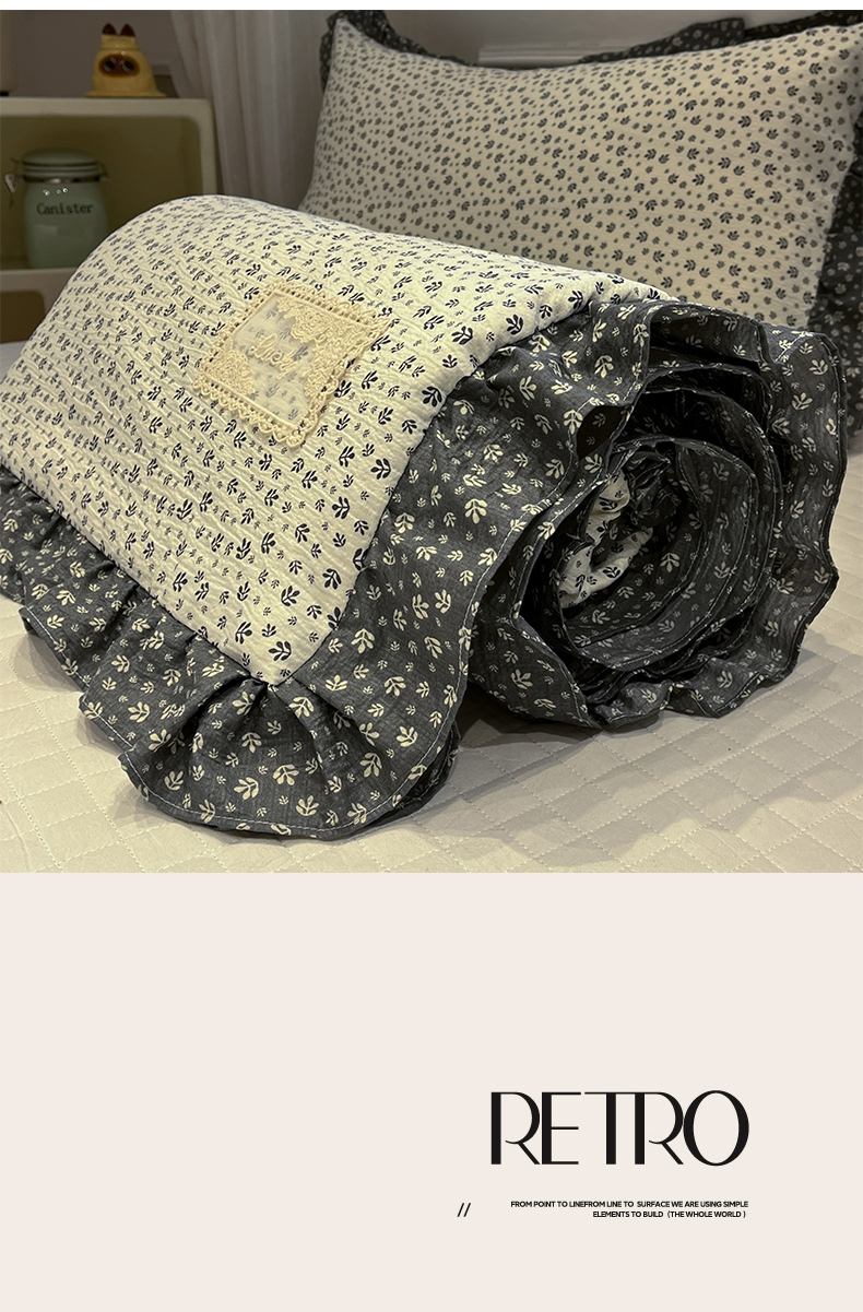 (总)一加一 2026新款复古碎花双层纱大豆夏被夏凉被空调被-纱边花眠,暗香,芬芳,花团锦簇,盛夏,叶影,绽放