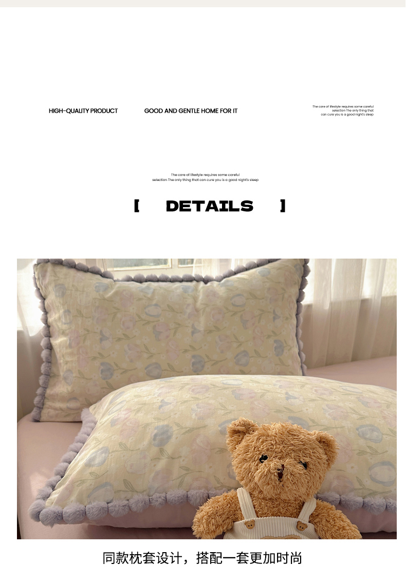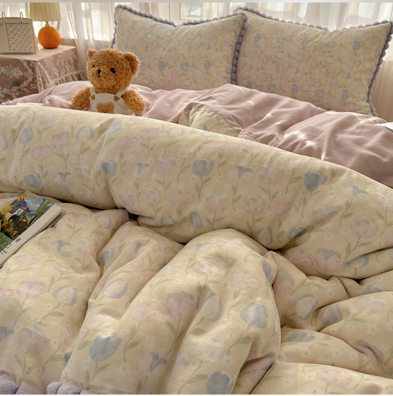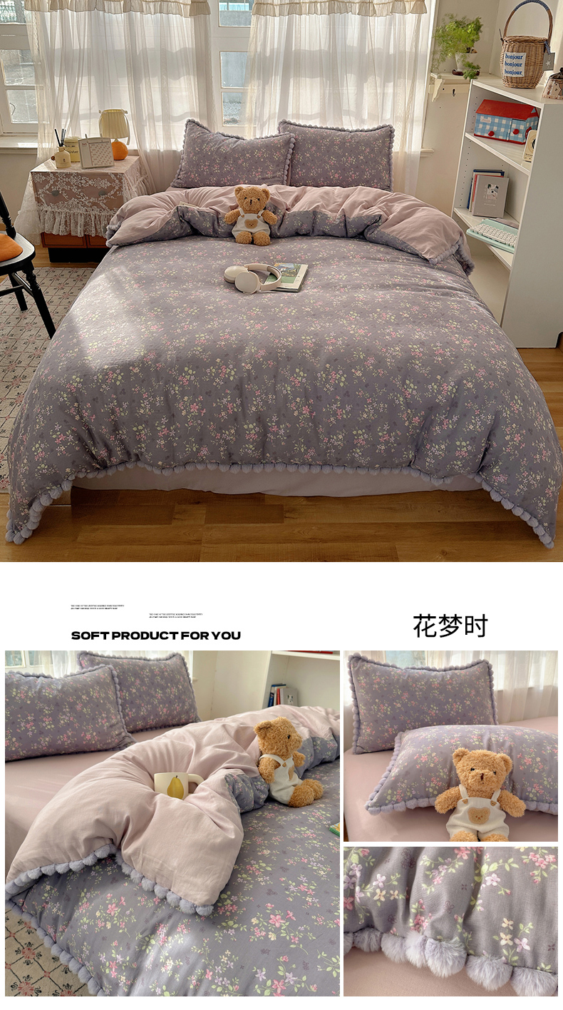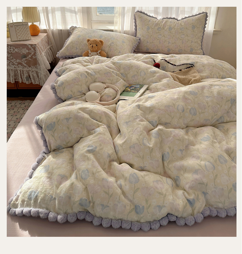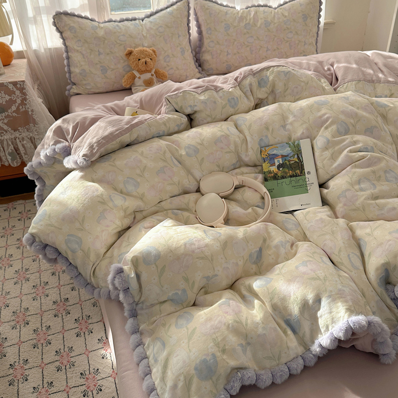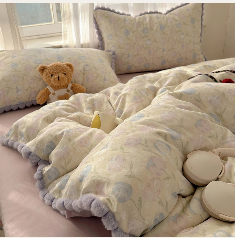 当前位置: 91家纺网 > 商品网购 > 床品套件 > 四件套 > 全棉普通四件套 > Sweet dreams甜梦 2026春夏新款全棉纯棉双层纱毛球款四件套 郁金花海