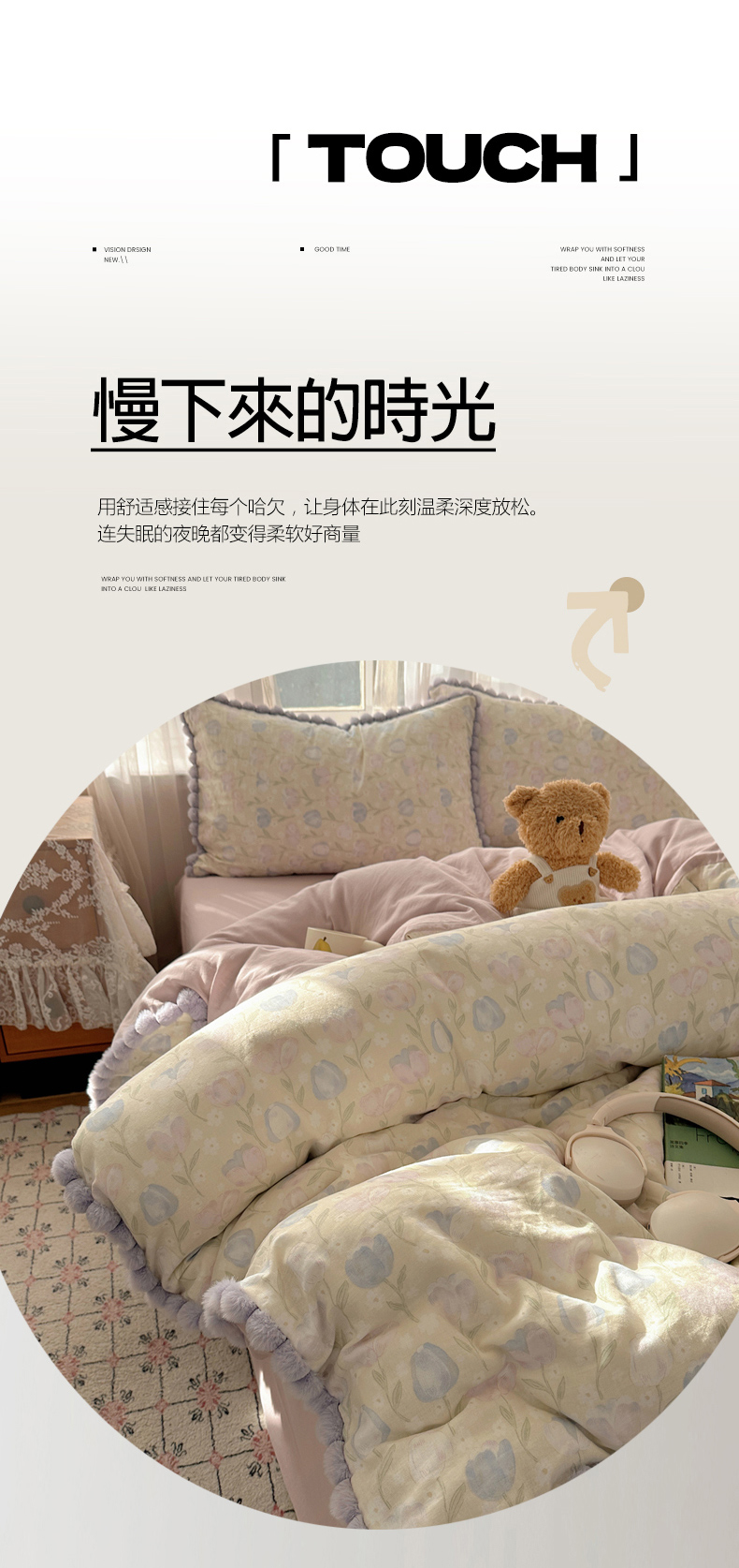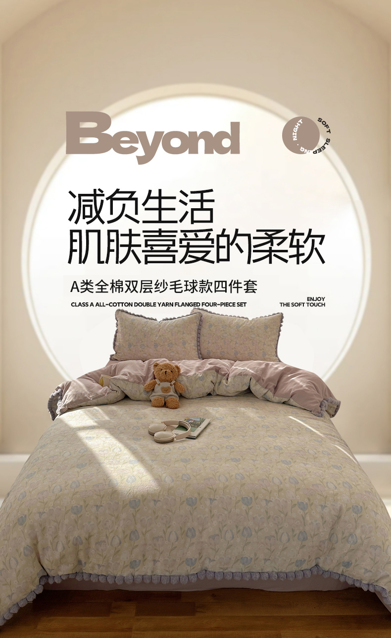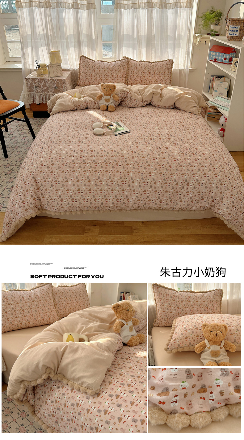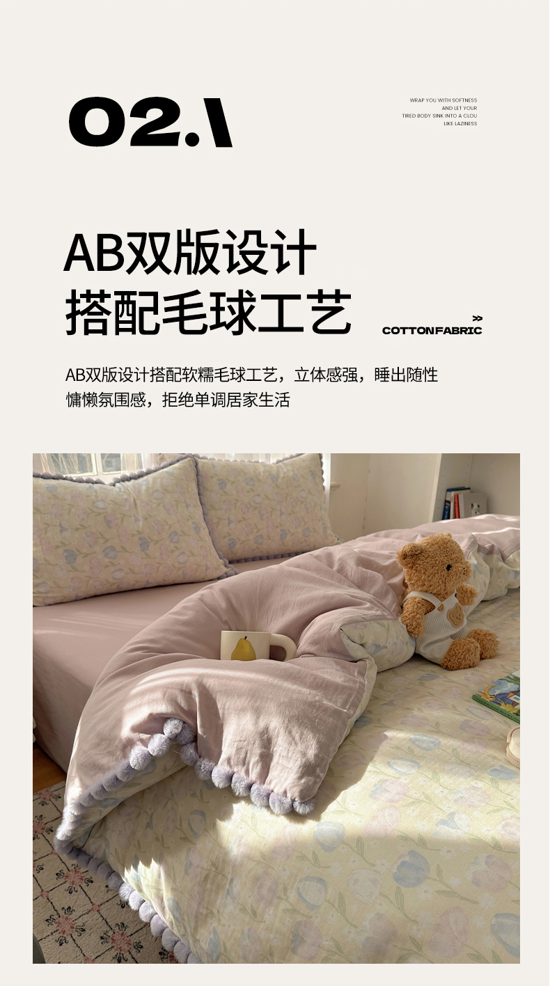 当前位置: 91家纺网 > 商品网购 > 床品套件 > 四件套 > 全棉普通四件套 > Sweet dreams甜梦 2026春夏新款全棉纯棉双层纱毛球款四件套 郁金花海