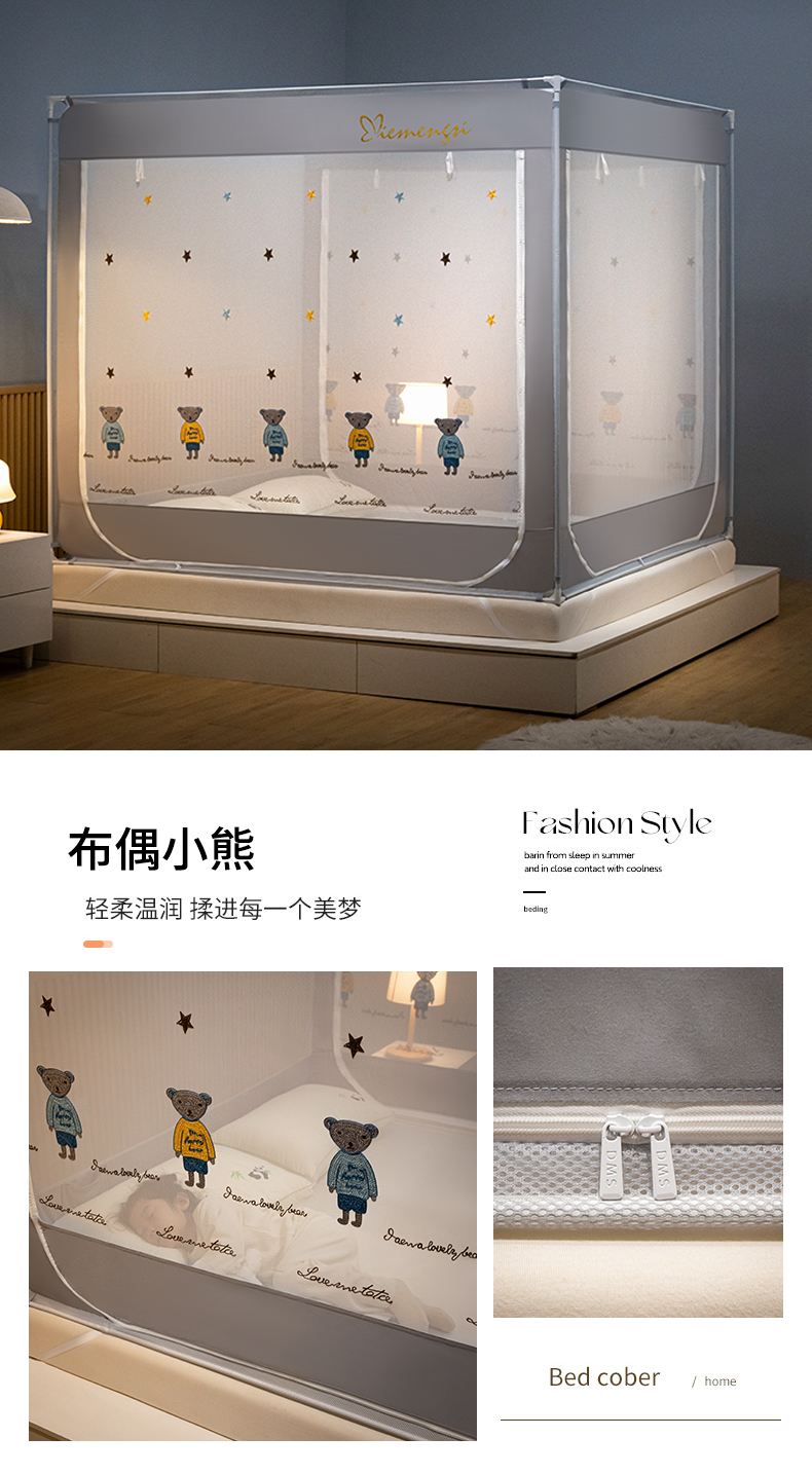 (总)飞轮海蚊帐 2025新款三开门方顶花边防摔遮光蚊帐-Z39,你好蛙,不许动,快乐家族,生活有趣,熊猫宝