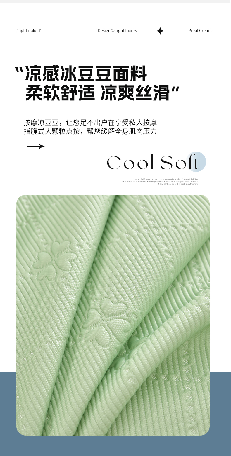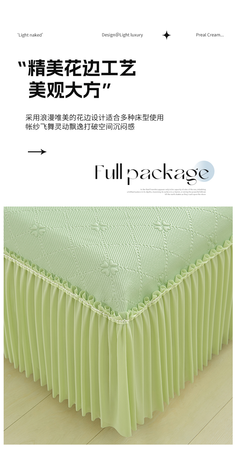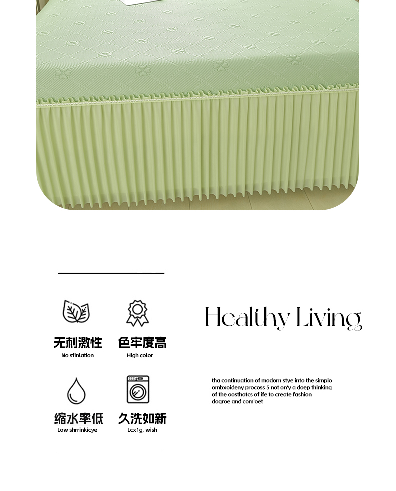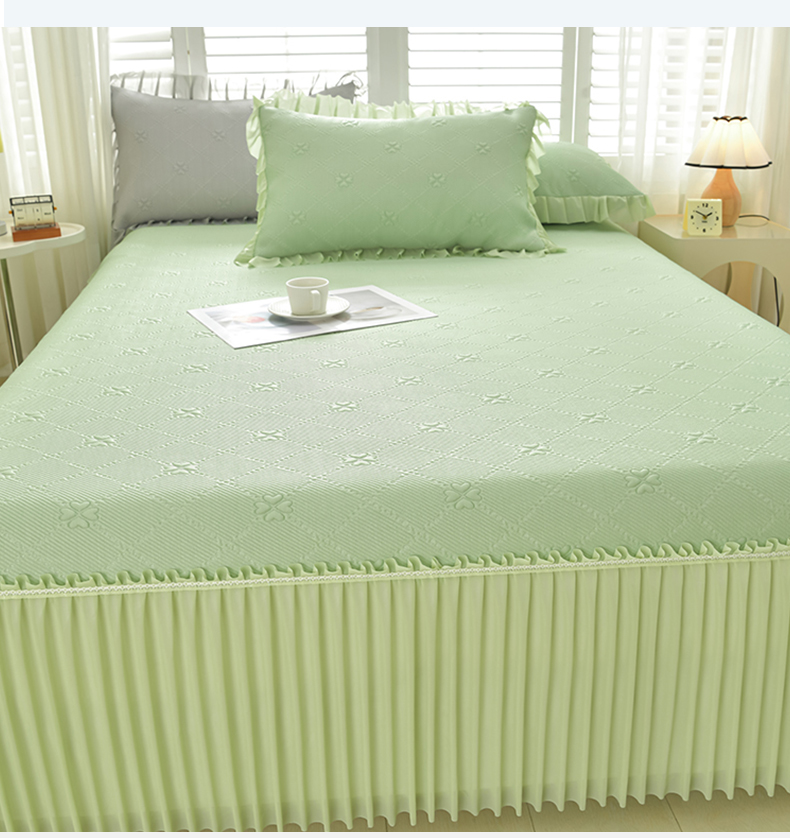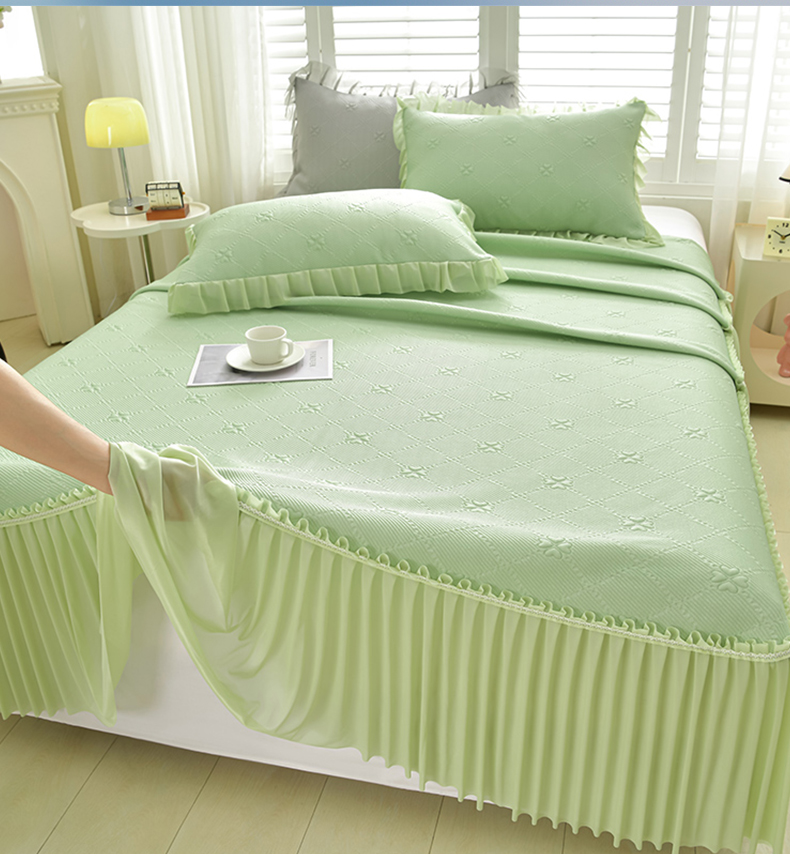 商品名称:畅畅家纺 2026春夏新款聚乙烯中分子凉感冰感凉豆豆凉席席子床裙三件套幸运草 幸运草-绿