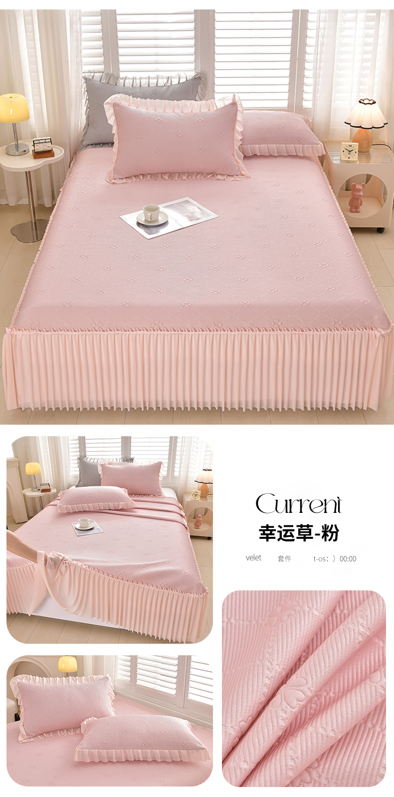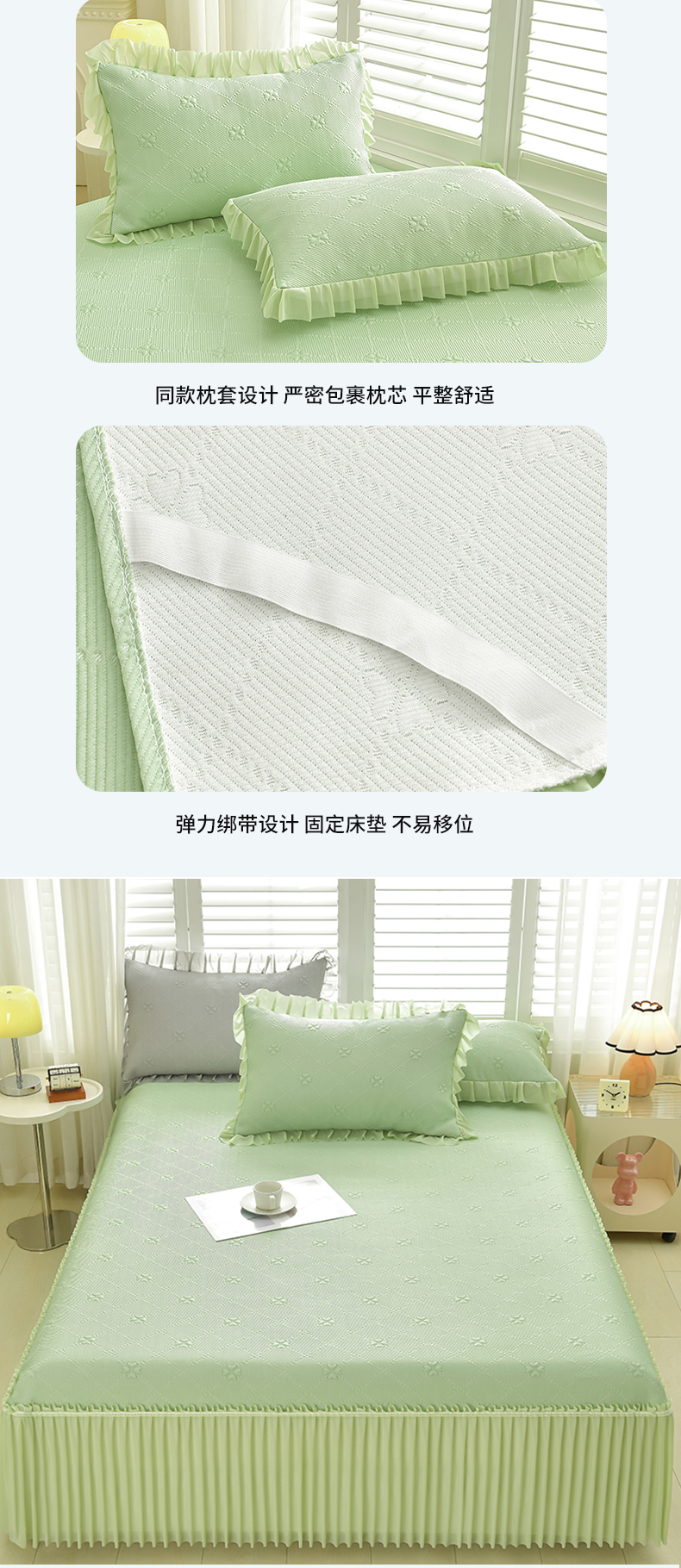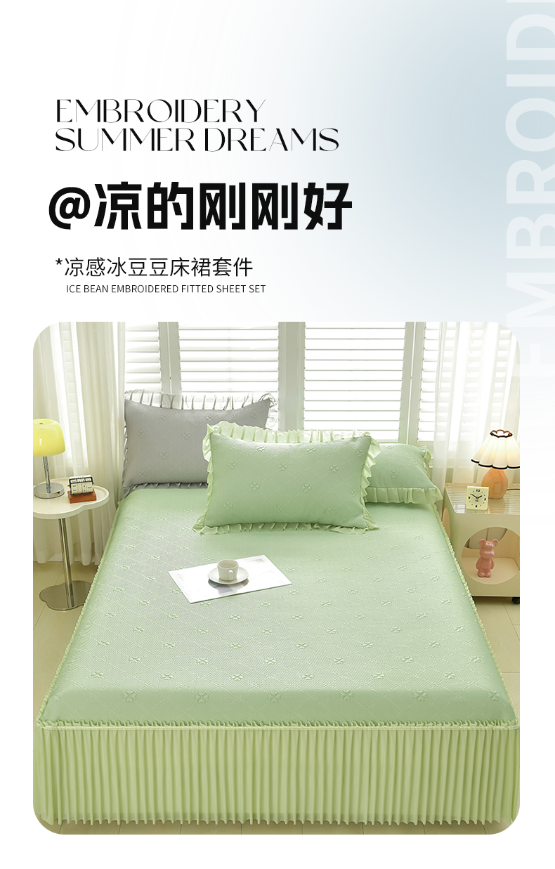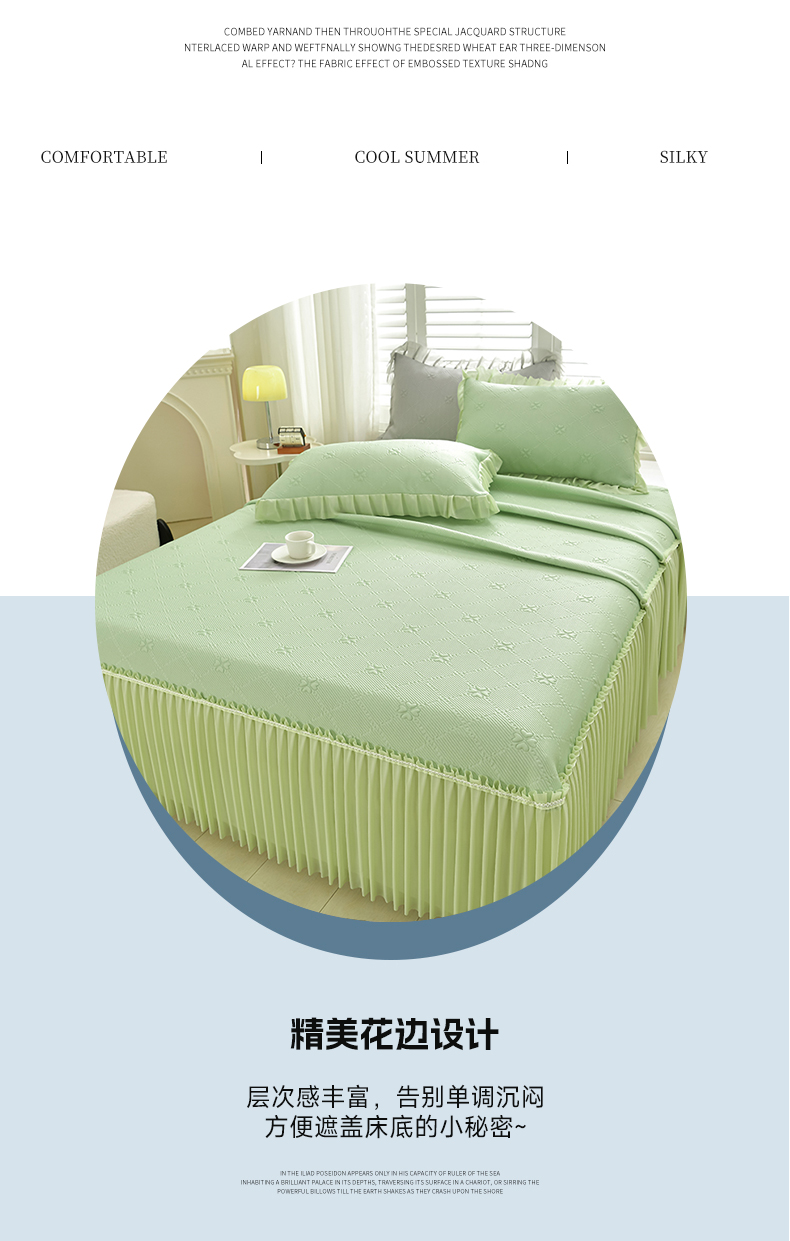 (总)畅畅家纺 2026春夏新款聚乙烯中分子双面提花高克重凉感冰感凉豆豆床裙三件套-经典玫瑰,经典玫瑰-粉,经典玫瑰-灰,经典玫瑰-蓝,经典玫瑰-绿