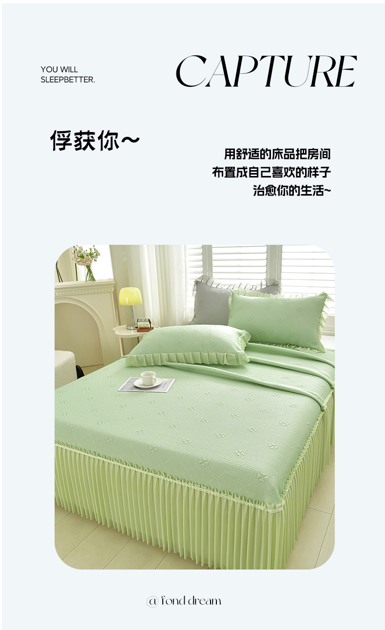 (总)畅畅家纺 2026新款网红爆款夏季立体爱心冰豆豆凉席床裙款三件套,爱心-豆沙粉,爱心-咖,爱心-浅绿,爱心-苹果绿,爱心-蓝,爱心-灰