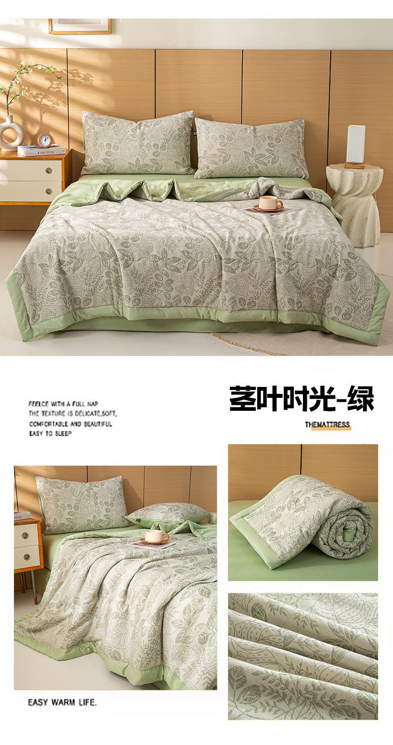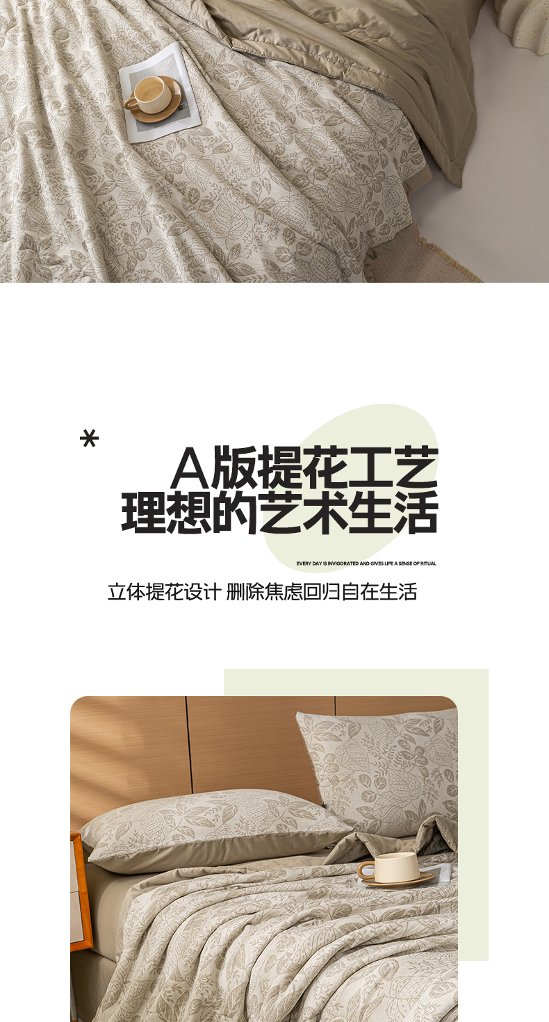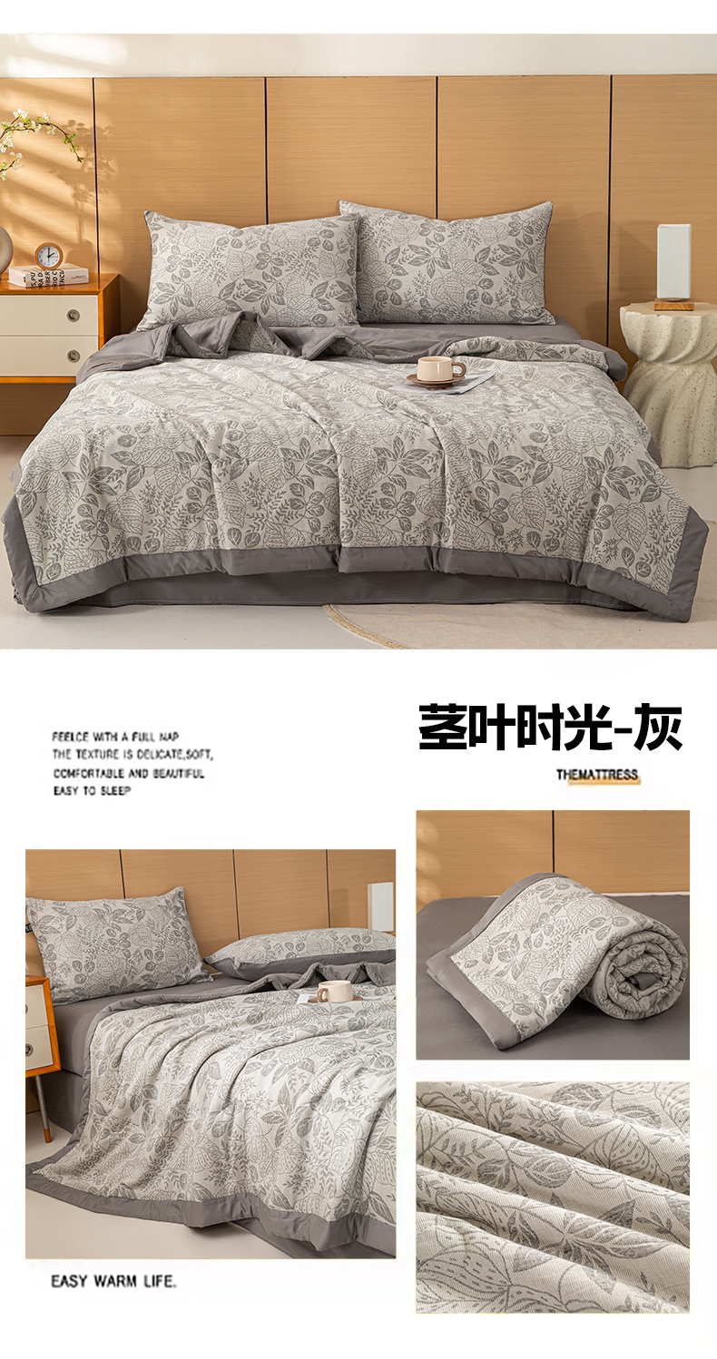 • 91家纺网 家纺一手货源 找家纺 恋人优选 2026新款全棉三层提花夏被空调被 茎叶时光-咖