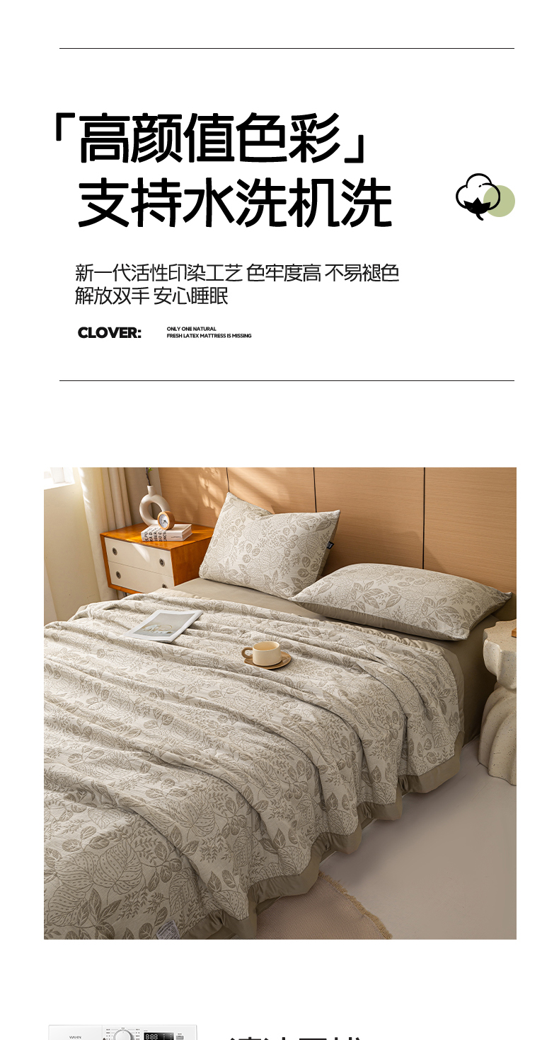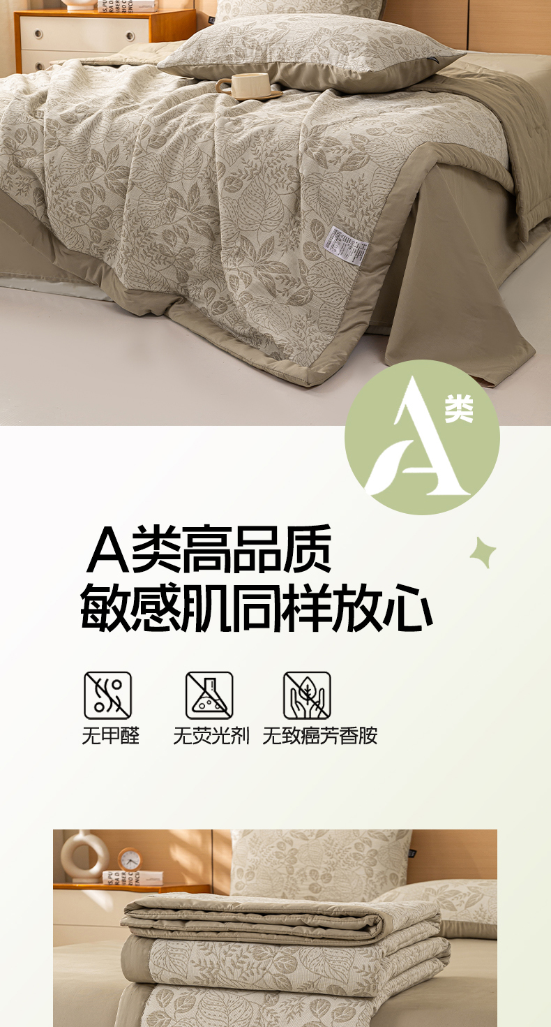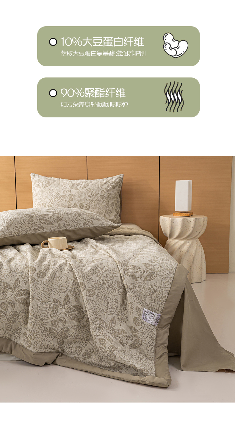 • 91家纺网 家纺一手货源 找家纺 恋人优选 2026新款全棉三层提花夏被空调被 茎叶时光-咖
