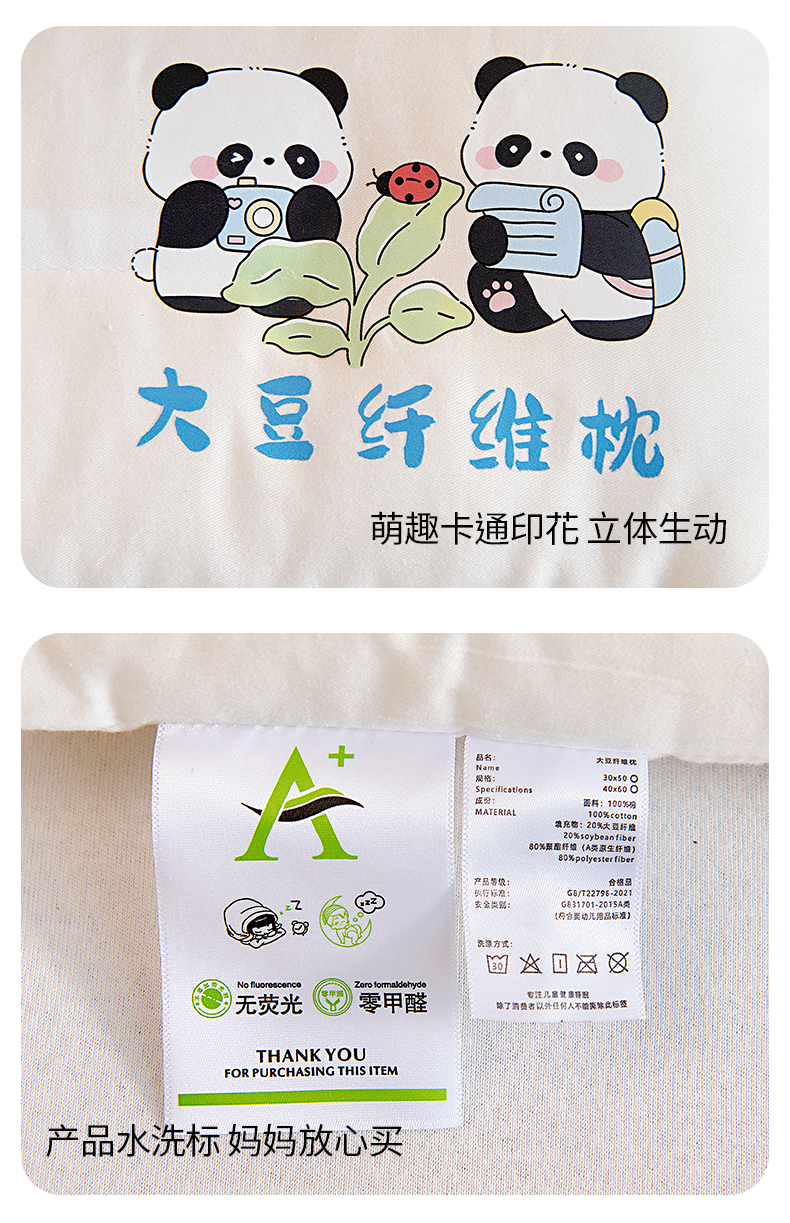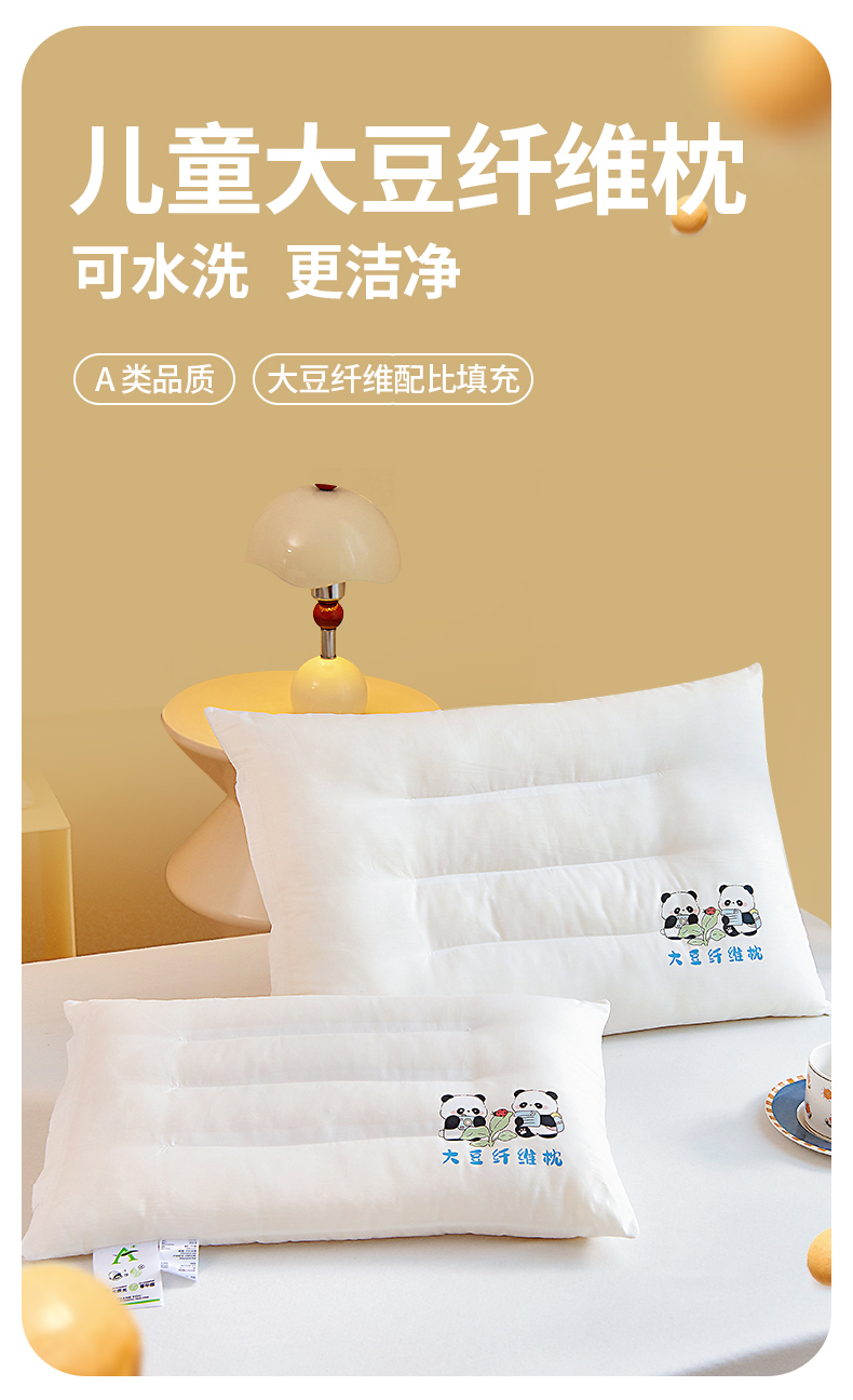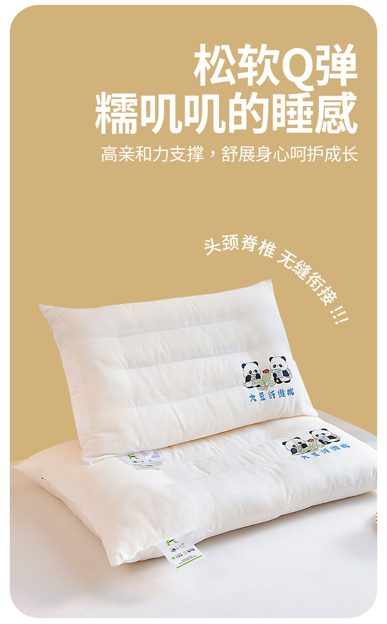 商品名称:吉咪兔家纺 2026新款儿童A类全棉大豆纤维枕芯单人学生宿舍枕头幼儿园卡通软枕护颈椎 大熊猫