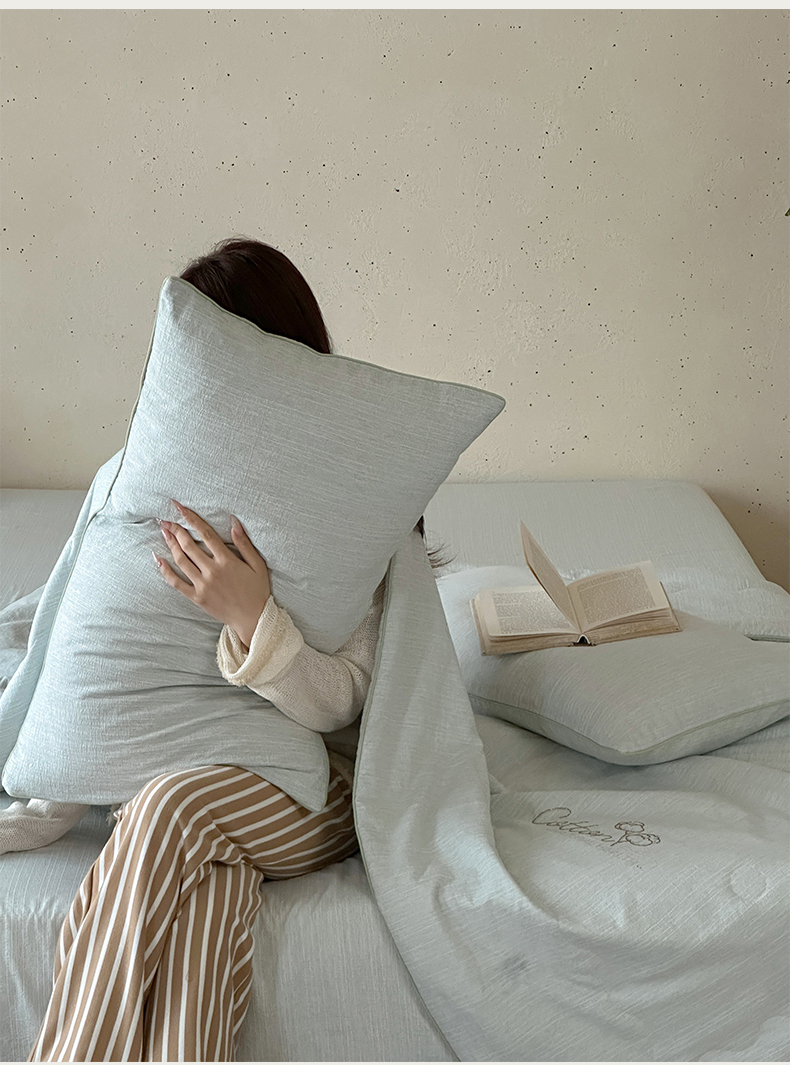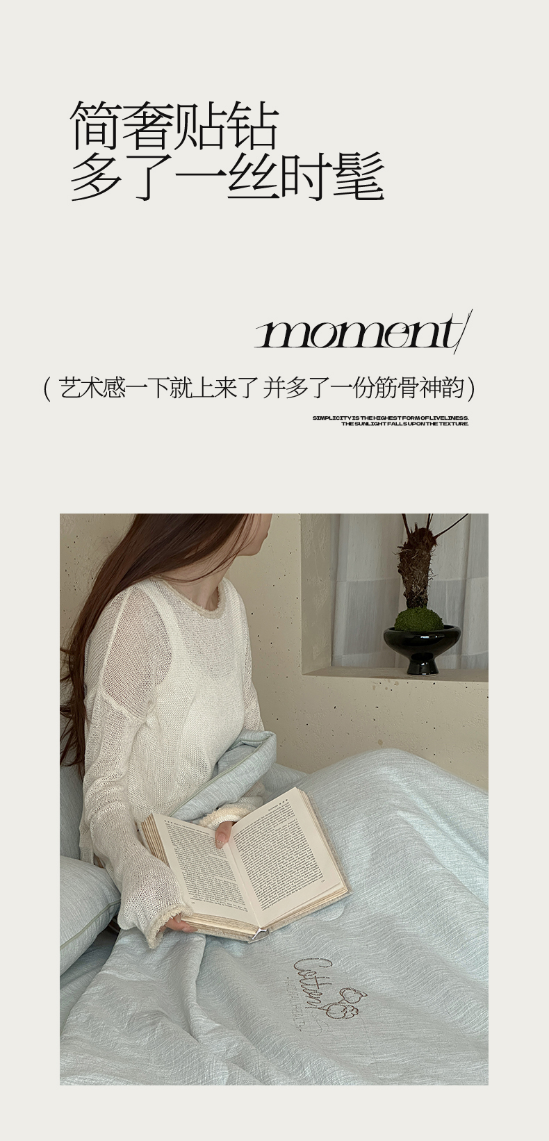(总)一加一 2025新款全棉色织简约风艾阳绒抗菌被芯,浅兰韵律,桃之夭天,悠然时光