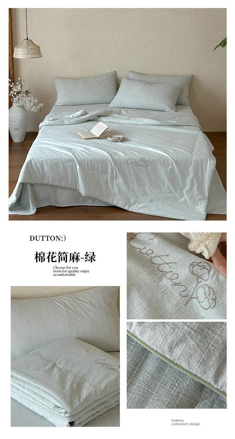 商品名称:一加一 2026新款透气简麻新疆棉花被夏被夏凉被空调被-棉花简麻 棉花简麻-绿