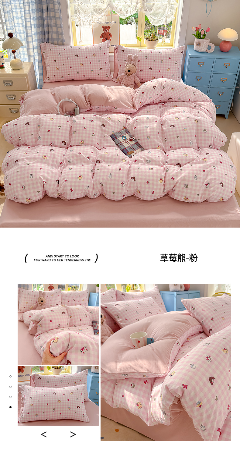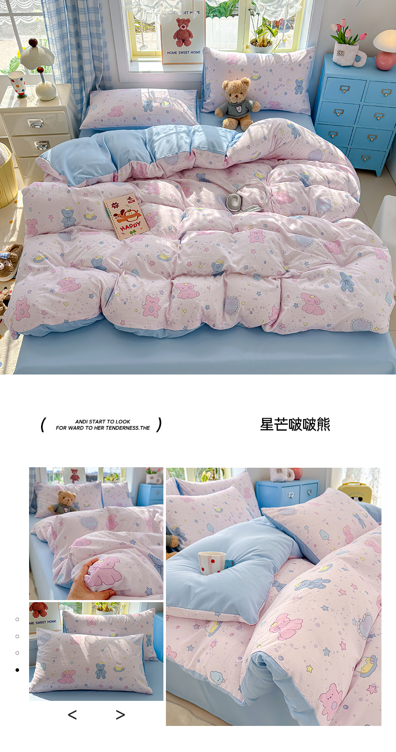 (总)铺尚美家纺 2026新款A类古法水洗仿棉云感纱四件套,萌兔小熊,安娜,波点熊,布丁狗,草莓啵啵,草莓熊-粉,草莓熊-蓝,丁香紫,格纹萌友团,格子熊,狗狗乐园,乖乖狗-灰,乖乖狗-玉,花园小猫,猫狗狂欢夜,玫瑰庄园,莫兰迪,奶绿牛油果,蔷薇花语,条纹小熊,小马星河,小奶团,星芒啵啵熊,雪花世界,英伦小木马,紫罗兰