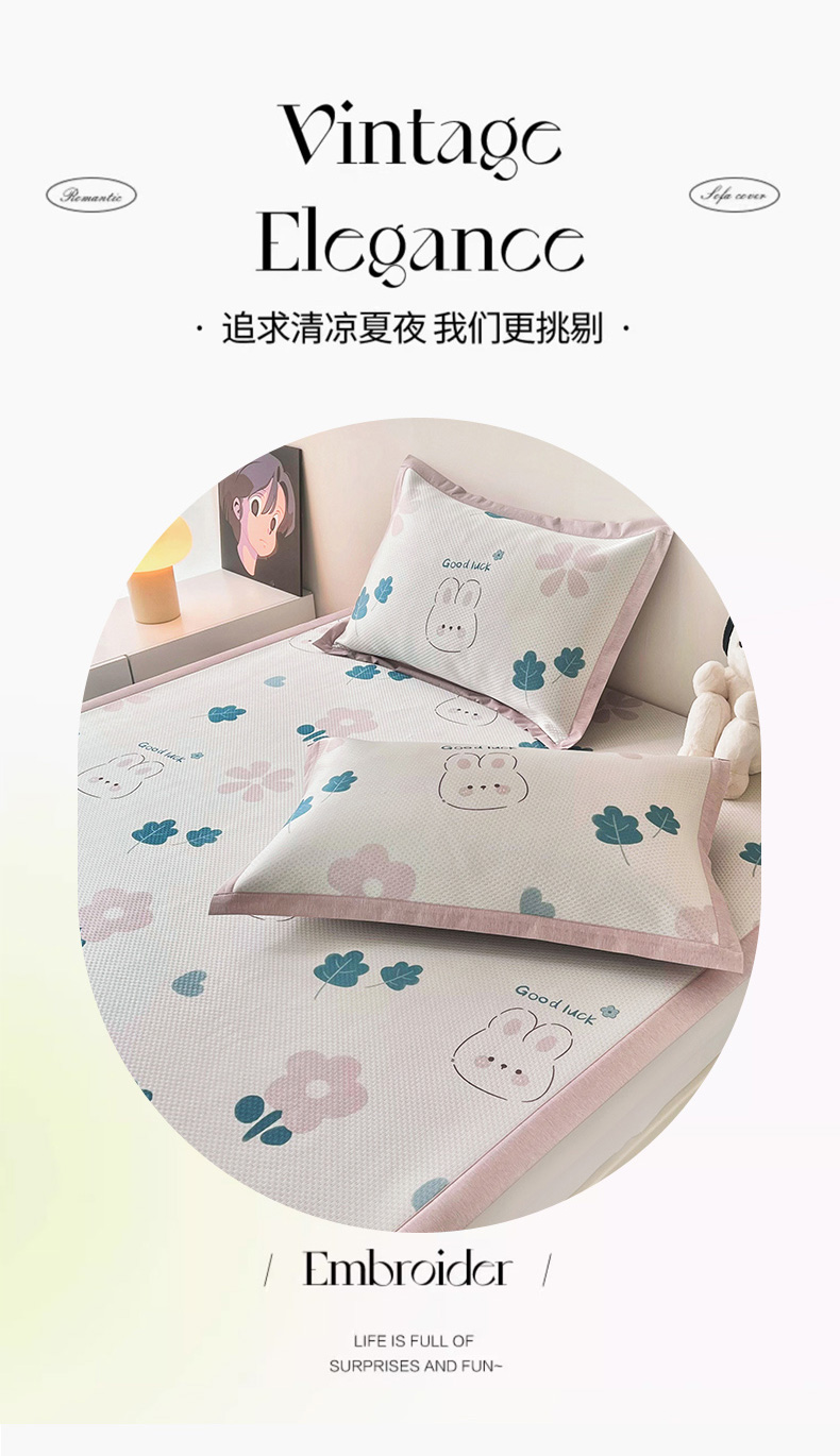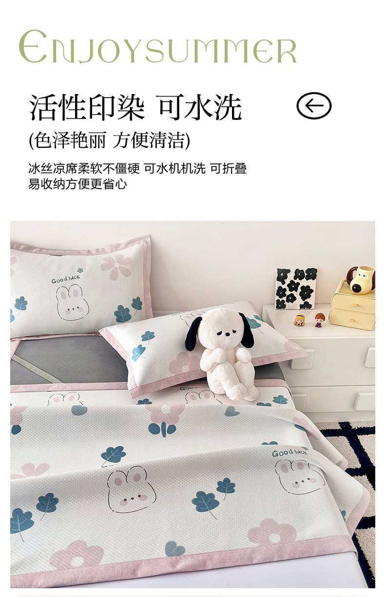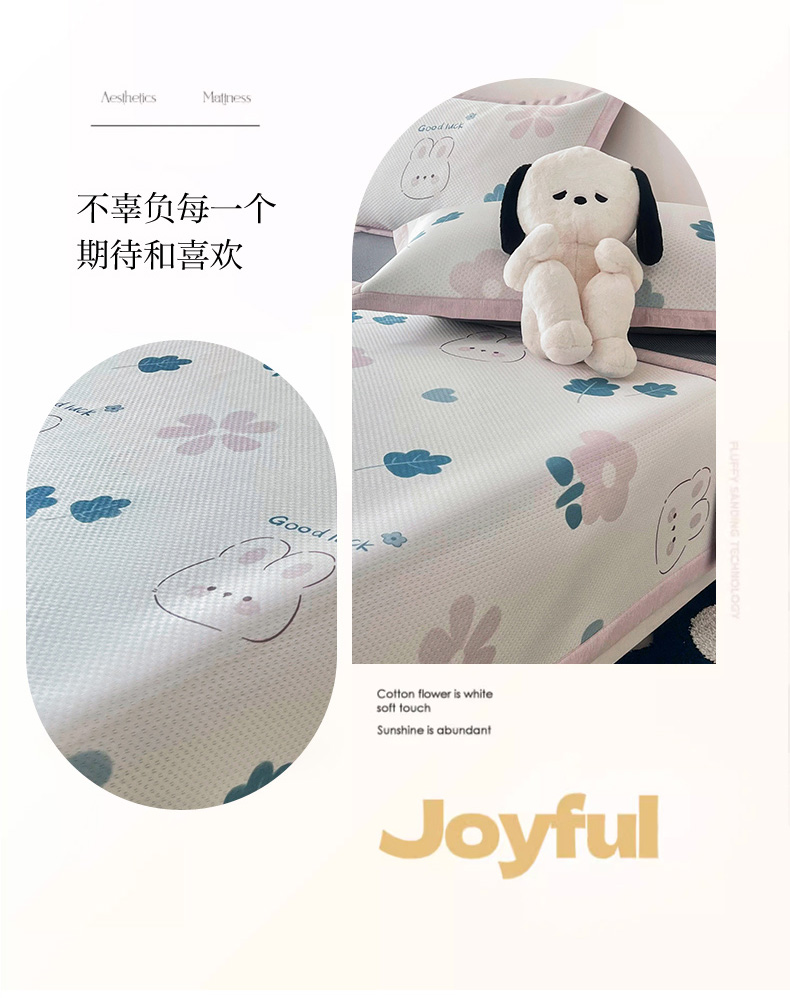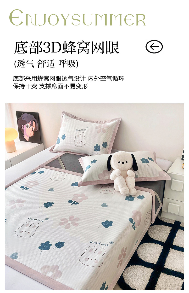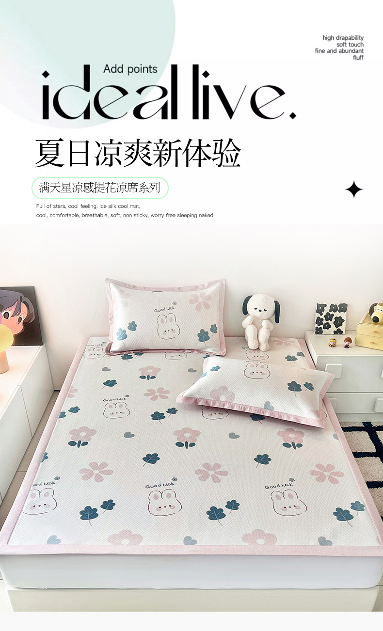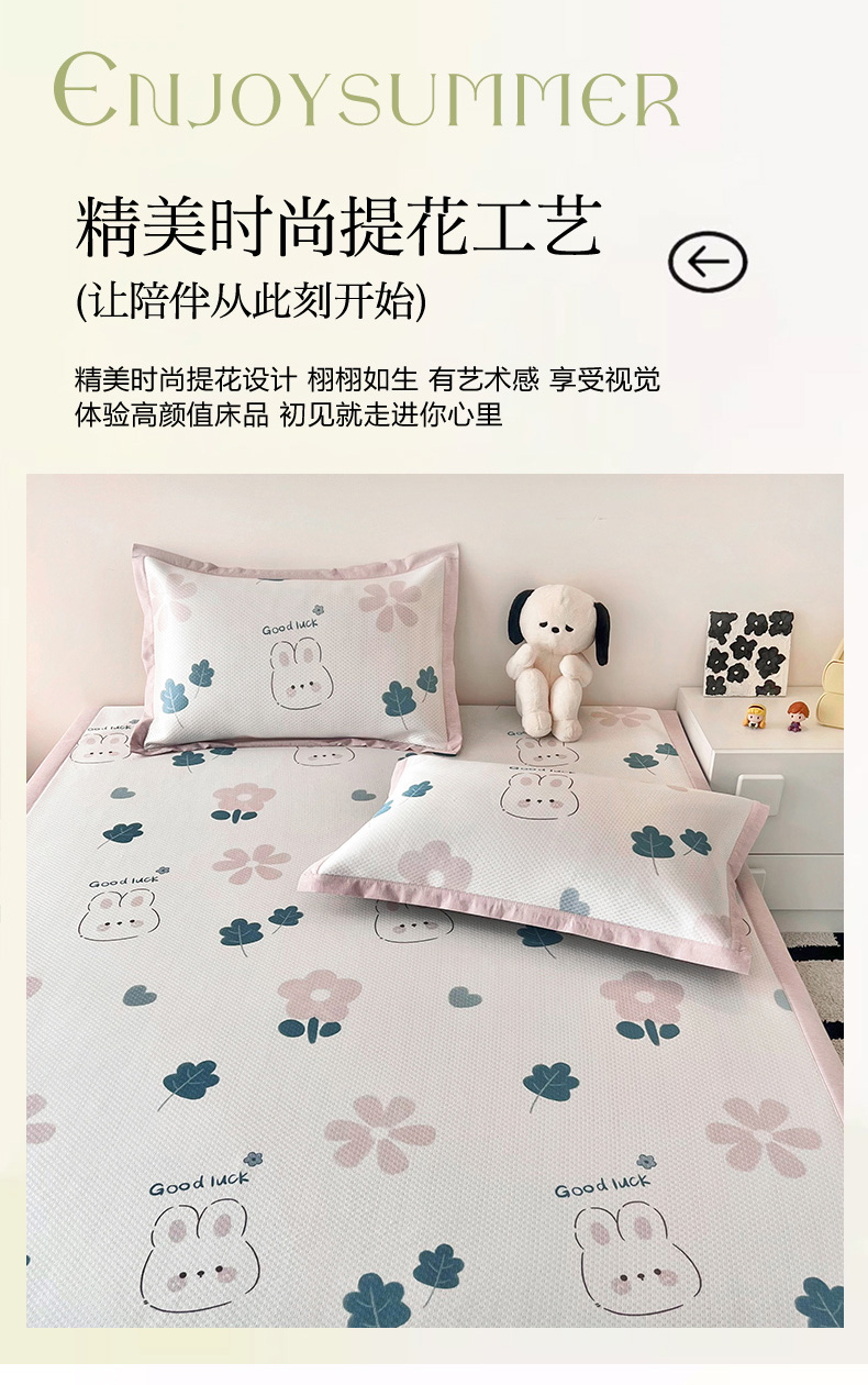 商品名称:倾慕家纺 2026新款A类满天星提花凉感凉席系列 开心兔