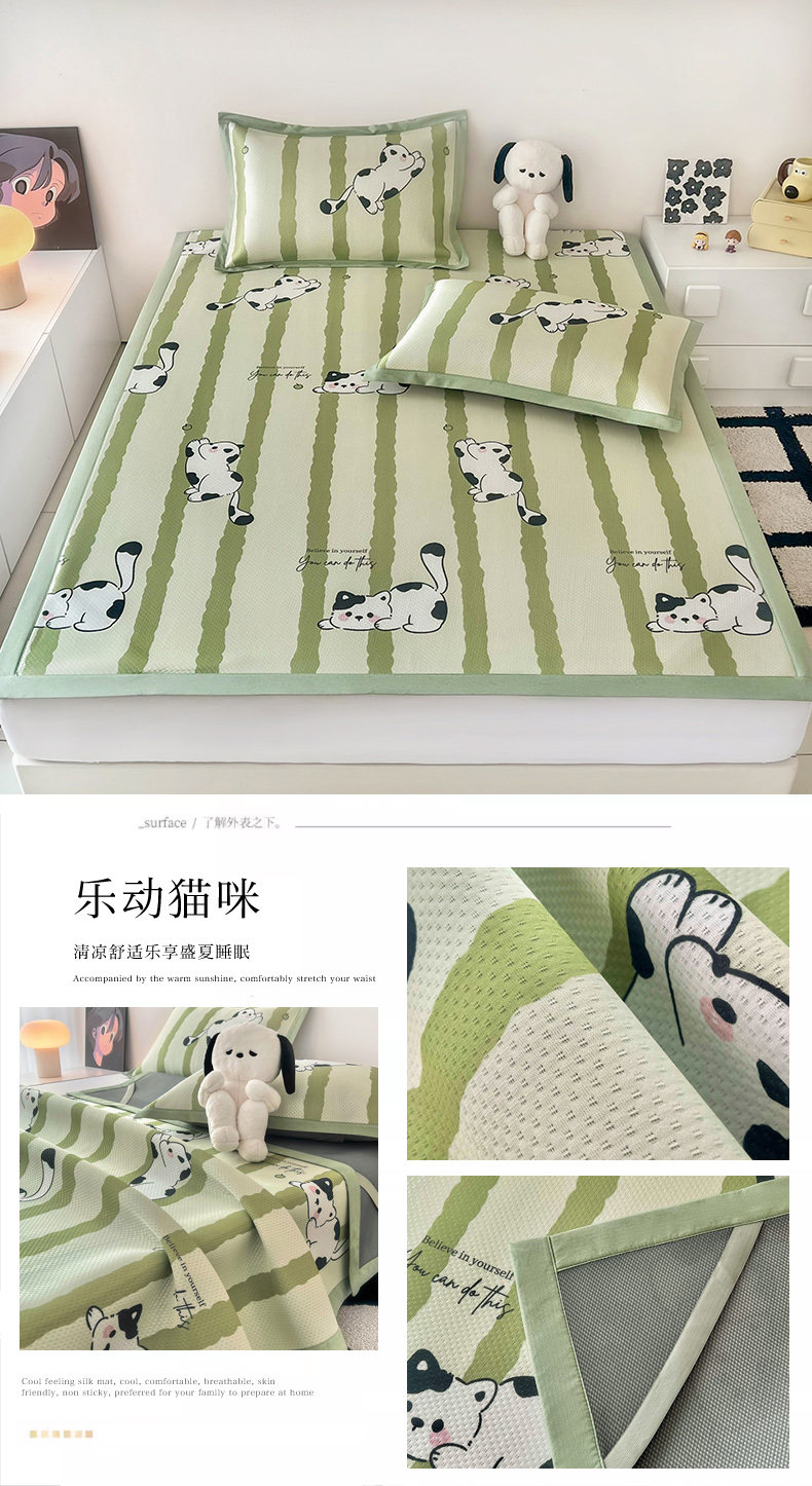 (总)倾慕家纺 2026新款A类满天星提花凉感凉席系列,缤纷兔,波波小龙,波浪彩龙,哈皮龙,开心兔,蓝色爱恋,乐动猫咪,律动小球,森林龙宝宝,条纹狗狗,小猫侠,小森林,叶小兔,PP熊猫