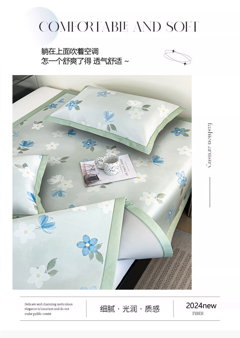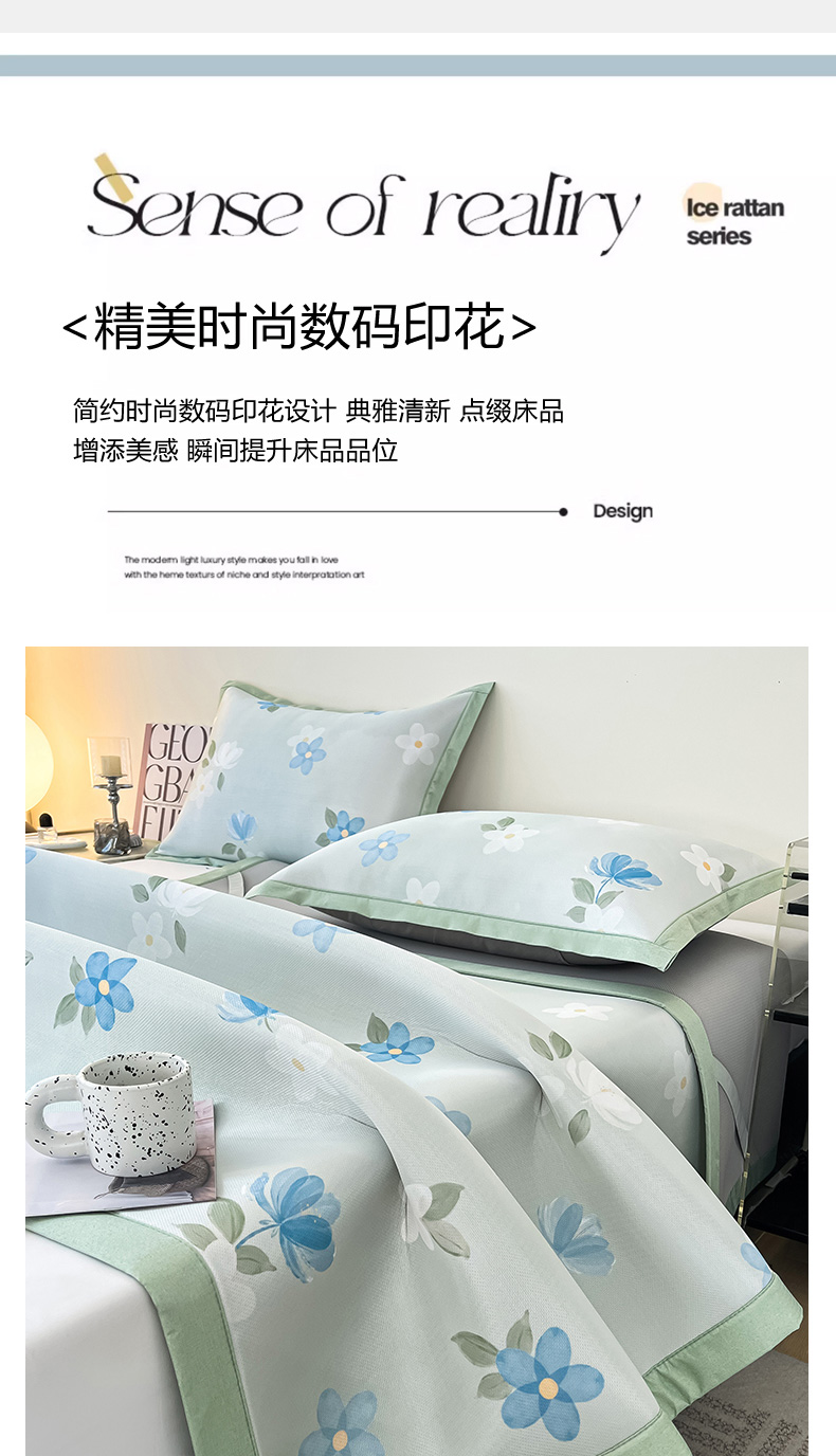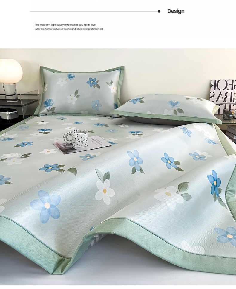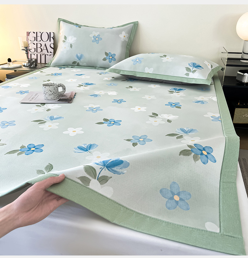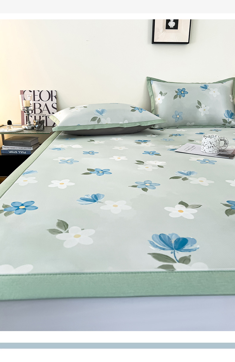 商品名称:倾慕家纺 2026新款A类简约风牛奶丝数码印花冰丝凉席 梦幻花朵绿