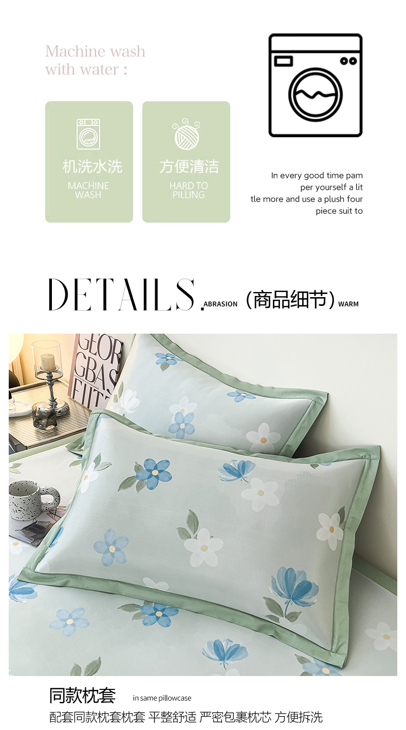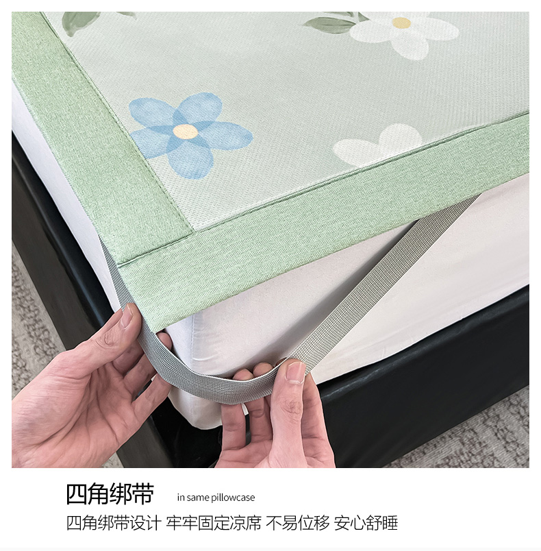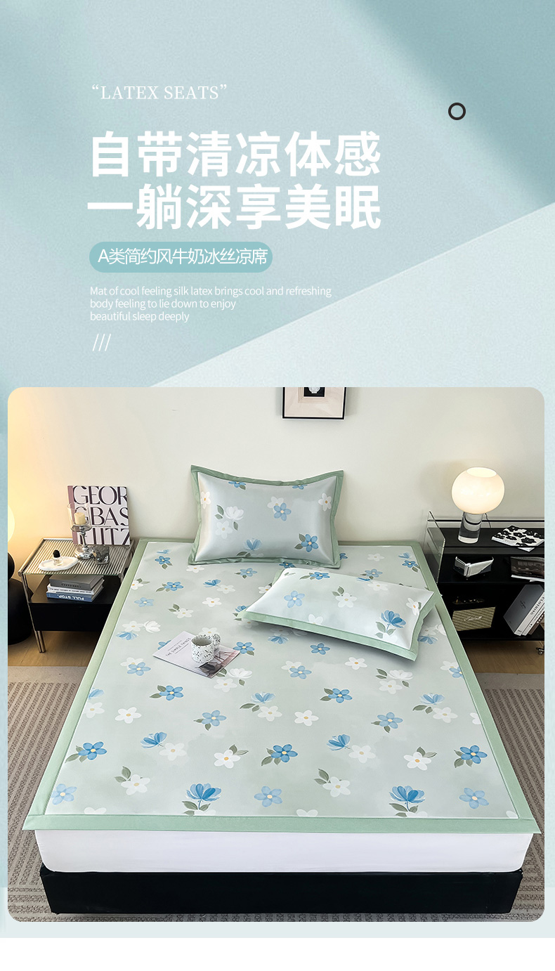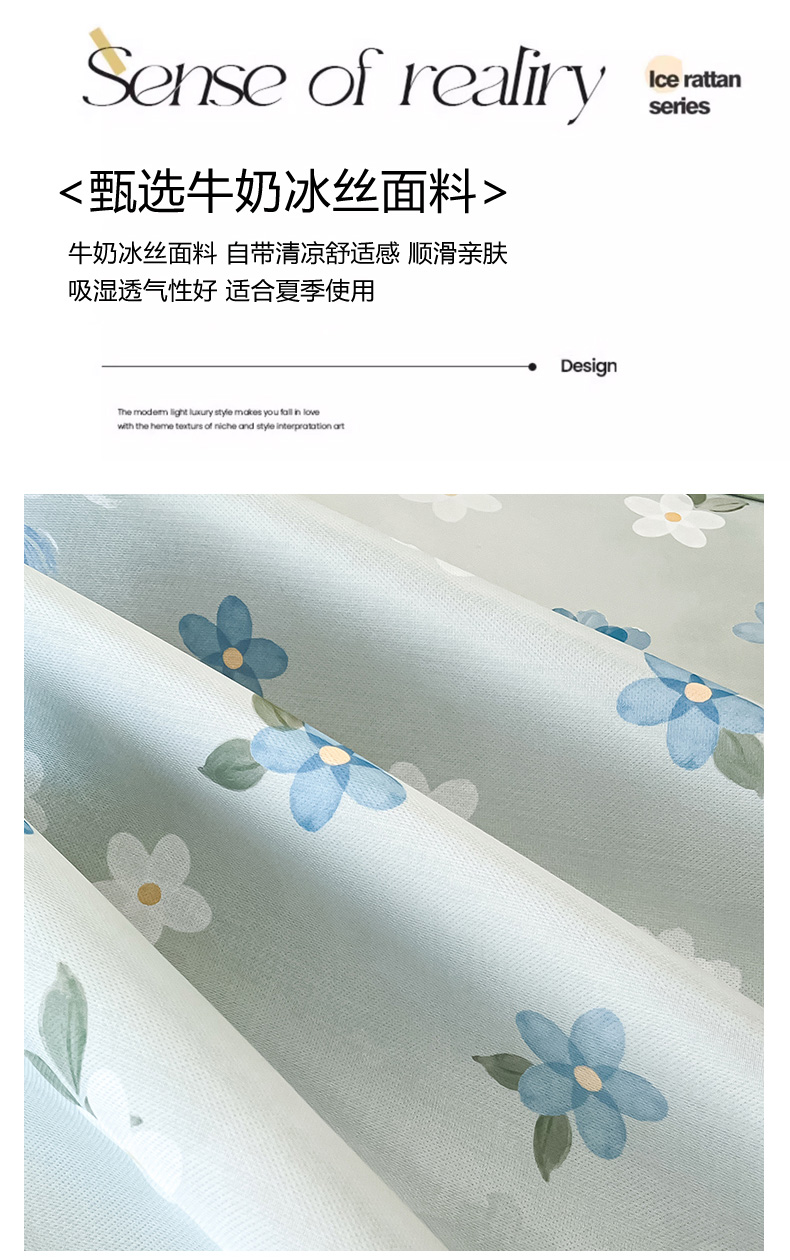 商品名称:倾慕家纺 2026新款A类简约风牛奶丝数码印花冰丝凉席 梦幻花朵绿