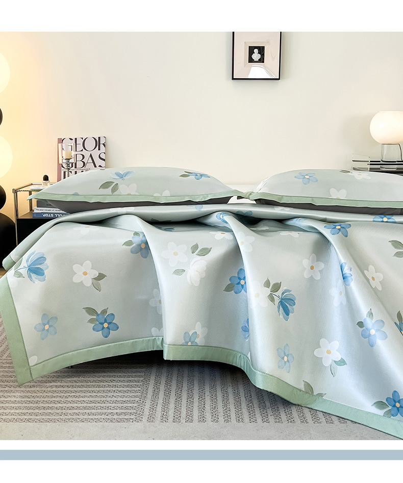 倾慕家纺 2026新款A类简约风牛奶丝数码印花冰丝凉席 梦幻花朵绿