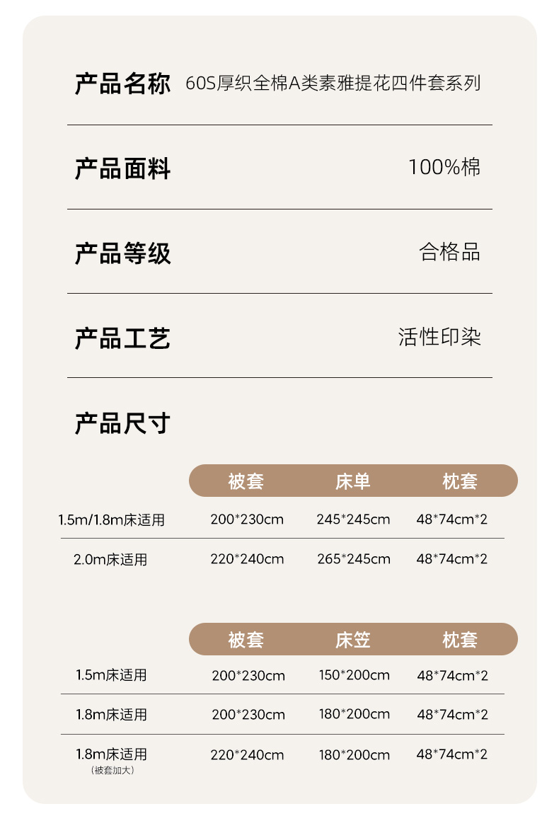 [{"sp_id":11,"sp_name":"\u989c\u8272","sp_format":2,"sp_list":[{"sp_value_id":51,"sp_value_name":"\u63a0\u5f71","sp_value_image":{"id":999,"path":"https:\/\/img3.91jf.com\/ghelp\/2026\/20260322\/20260322143647_529983.jpg"},"sp_value_video":{"id":0,"img":"","path":"","time":0,"download_num":0,"play_num":0},"price":"105.00","storage":3000,"weight":"2.500","is_check_weight":0,"plus_price":"","sp_sort":4}]},{"sp_id":10,"sp_name":"\u5c3a\u5bf8","sp_format":1,"sp_list":[{"sp_value_id":41,"sp_value_name":"1.2m\u5e8a\u5355\u6b3e\u4e09\u4ef6\u5957","sp_value_image":{"id":0,"path":""},"sp_value_video":{"id":0,"img":"","path":"","time":0,"download_num":0,"play_num":0},"price":"105.00","storage":500,"weight":"2.500","is_check_weight":0,"plus_price":"","sp_sort":5},{"sp_value_id":42,"sp_value_name":"1.5m\u5e8a\u5355\u6b3e\u56db\u4ef6\u5957","sp_value_image":{"id":0,"path":""},"sp_value_video":{"id":0,"img":"","path":"","time":0,"download_num":0,"play_num":0},"price":"135.00","storage":500,"weight":"2.500","is_check_weight":0,"plus_price":"","sp_sort":6},{"sp_value_id":43,"sp_value_name":"1.8m\u5e8a\u5355\u6b3e\u56db\u4ef6\u5957","sp_value_image":{"id":0,"path":""},"sp_value_video":{"id":0,"img":"","path":"","time":0,"download_num":0,"play_num":0},"price":"135.00","storage":500,"weight":"2.500","is_check_weight":0,"plus_price":"","sp_sort":7},{"sp_value_id":44,"sp_value_name":"2.0m\u5e8a\u5355\u6b3e\u56db\u4ef6\u5957","sp_value_image":{"id":0,"path":""},"sp_value_video":{"id":0,"img":"","path":"","time":0,"download_num":0,"play_num":0},"price":"145.00","storage":500,"weight":"2.500","is_check_weight":0,"plus_price":"","sp_sort":8},{"sp_value_id":45,"sp_value_name":"1.5m\u5e8a\u7b20\u6b3e\u56db\u4ef6\u5957","sp_value_image":{"id":0,"path":""},"sp_value_video":{"id":0,"img":"","path":"","time":0,"download_num":0,"play_num":0},"price":"140.00","storage":500,"weight":"2.500","is_check_weight":0,"plus_price":"","sp_sort":9},{"sp_value_id":736,"sp_value_name":"1.8m\u5e8a\u7b20\u6b3e\u56db\u4ef6\u5957","sp_value_image":{"id":0,"path":""},"sp_value_video":{"id":0,"img":"","path":"","time":0,"download_num":0,"play_num":0},"price":"140.00","storage":500,"weight":"2.500","is_check_weight":0,"plus_price":"","sp_sort":10}]}]