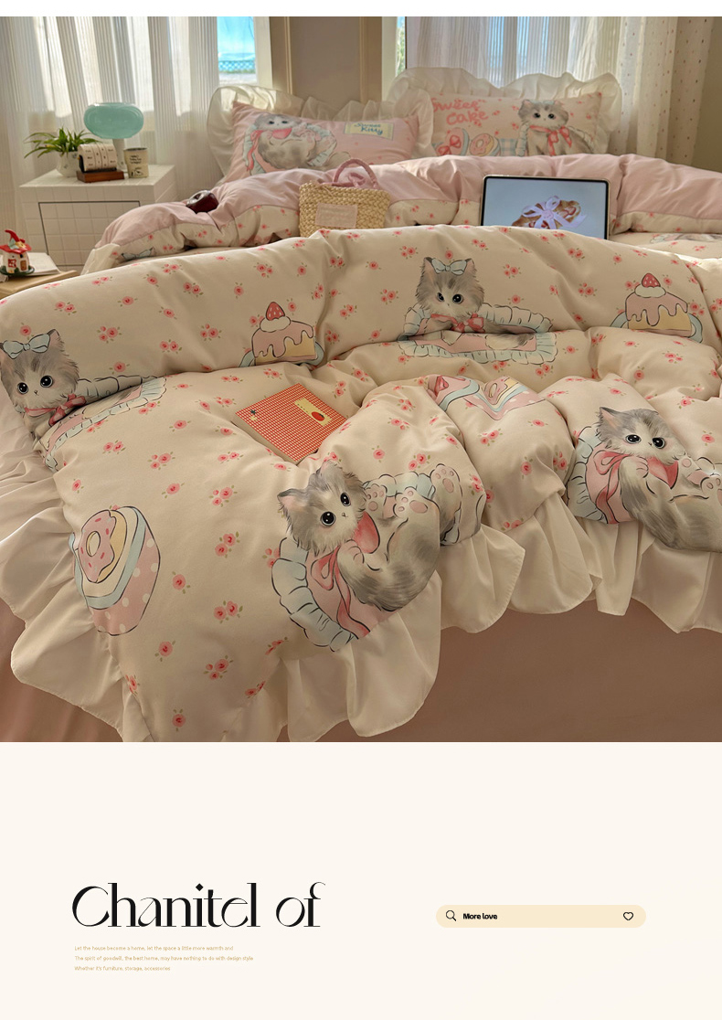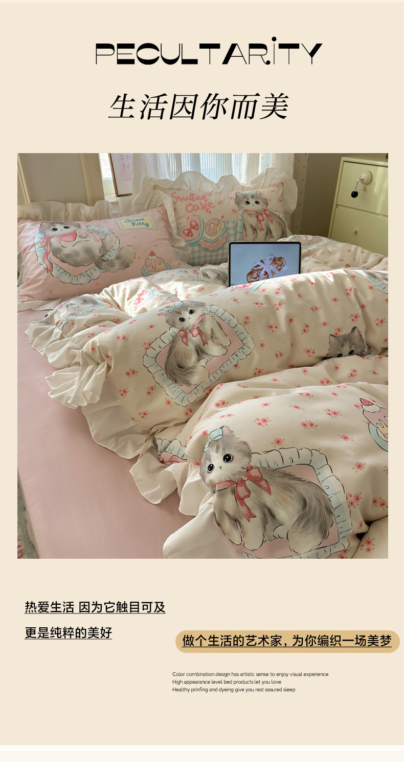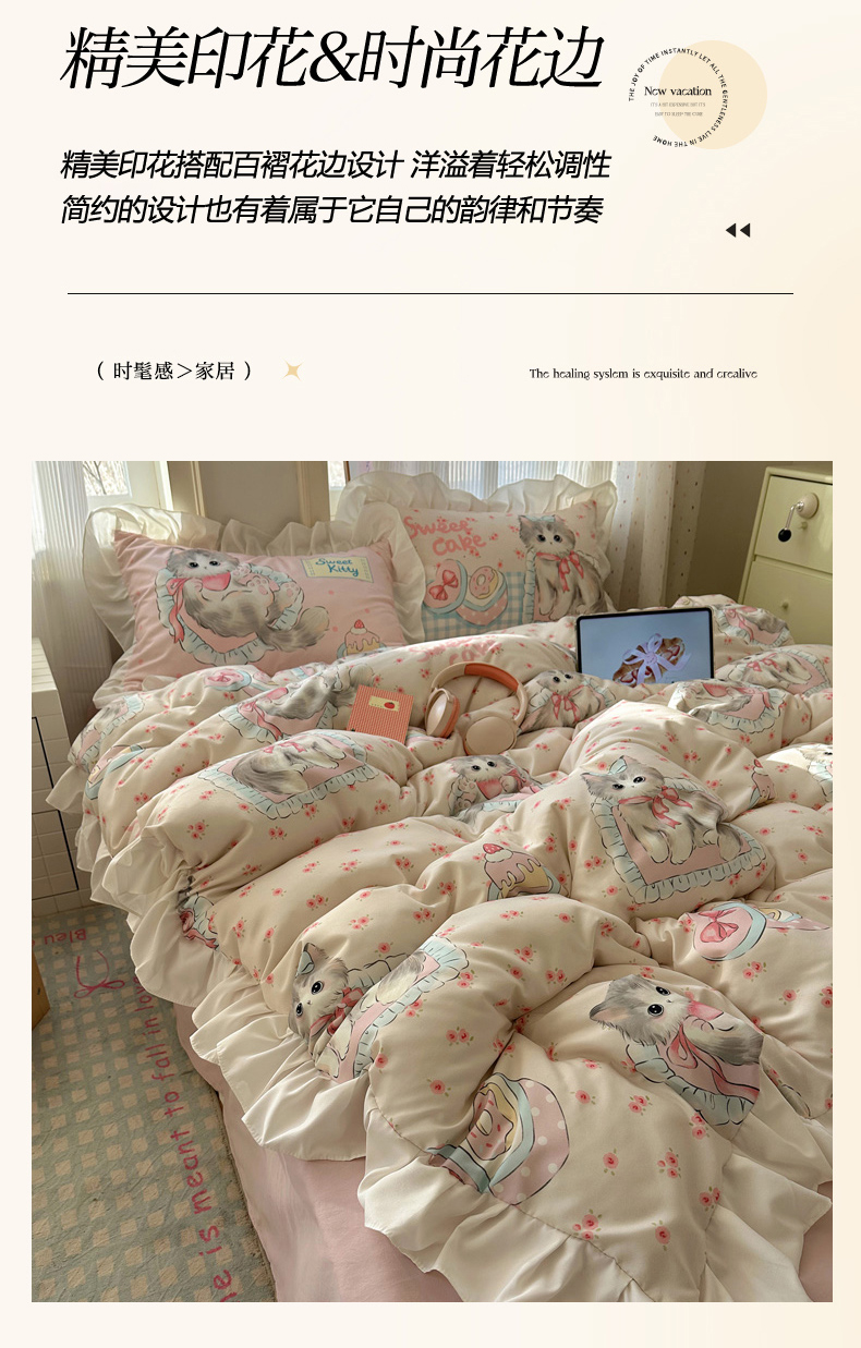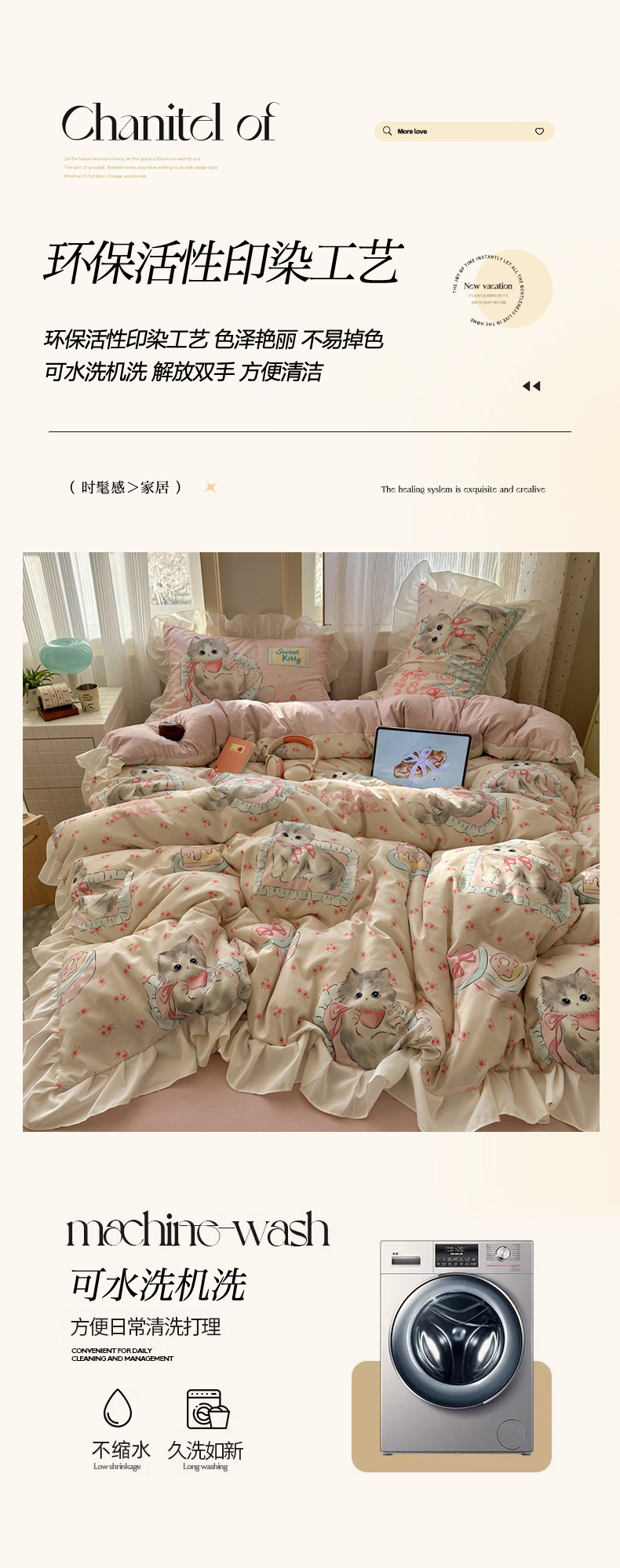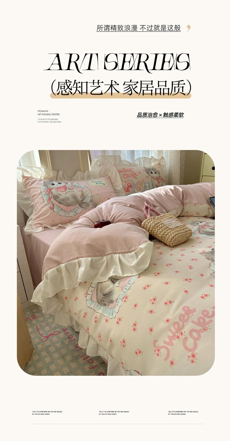 当前位置: 91家纺网 > 商品网购 > 床品套件 > 四件套 > 水洗棉四件套 > 沐慕 2026新款加厚款水洗棉云朵棉花边款四件套 M玫瑰粉喵