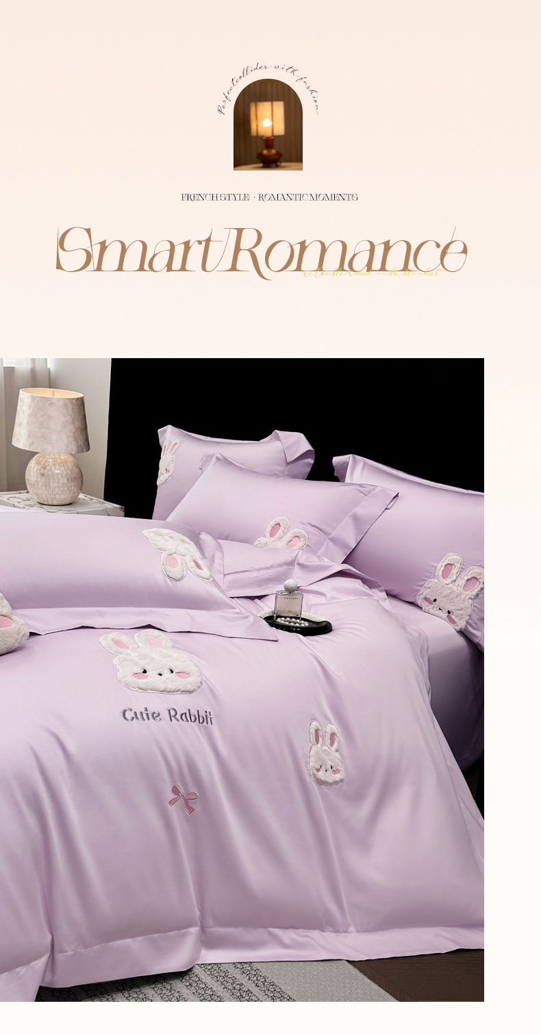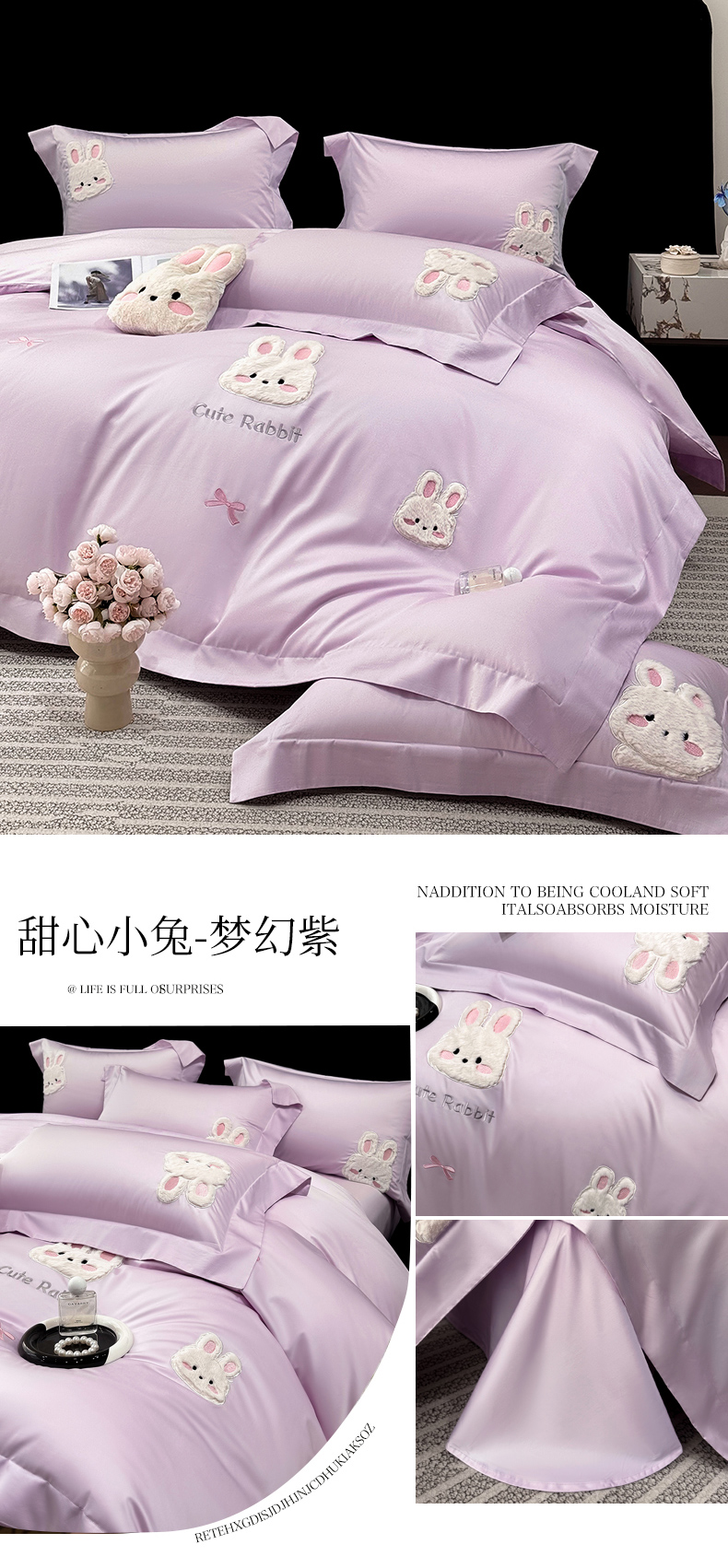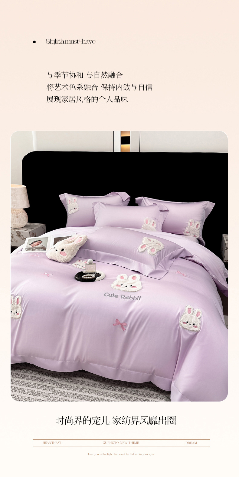 • 91家纺网 家纺一手货源 找家纺 (总)星蕴家纺 2026新款卡通长绒棉纯棉绣花四件套-甜心小兔,甜心小兔-天空蓝,甜心小兔-梦幻紫,甜心小兔-温柔粉
