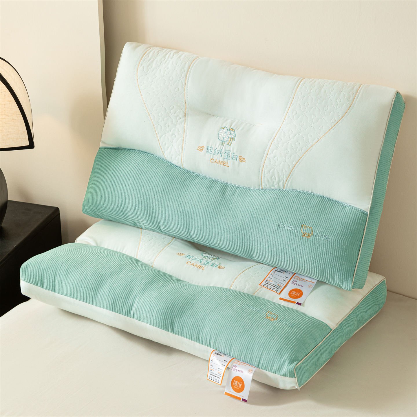 (总)爱来伊家纺 2026新款驼绒蛋白枕枕头枕芯,粉色,绿色