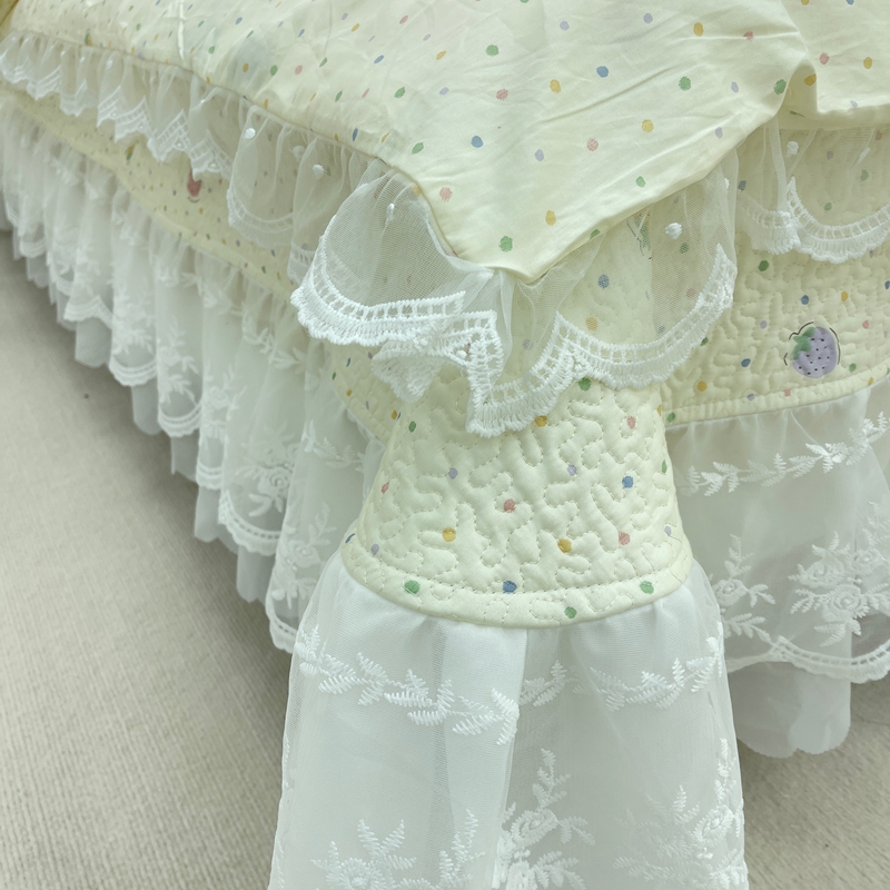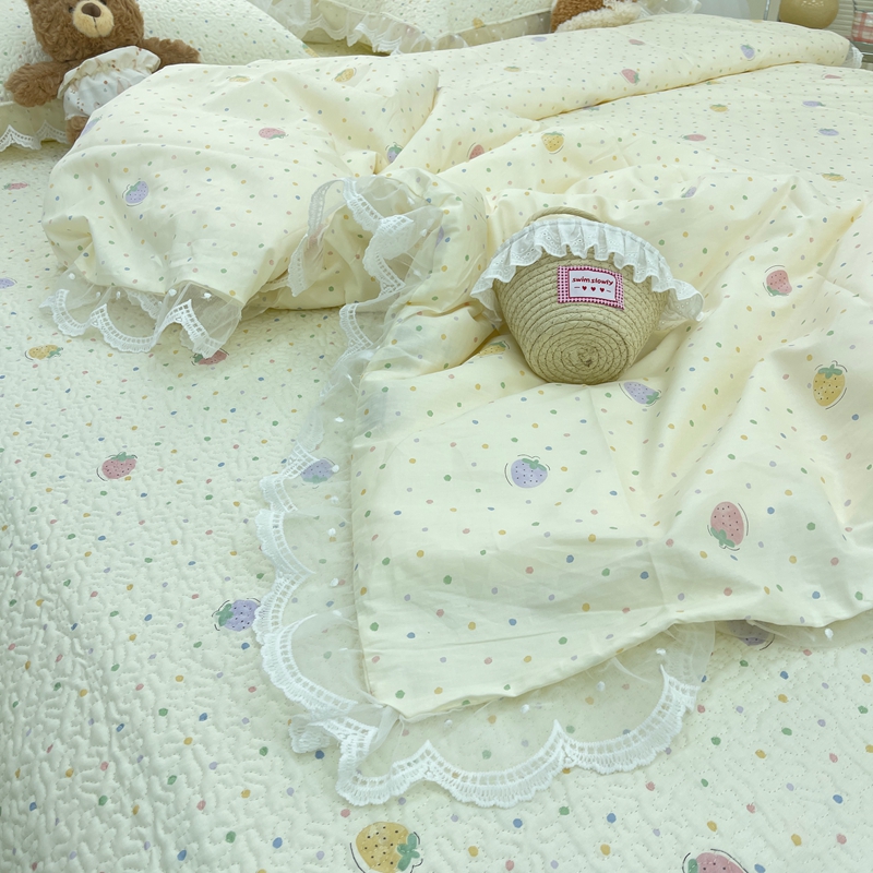 商品名称:禧瑞谷 2025新款双层花边纯棉床盖雪纺蕾丝款纯棉床盖四件套 莓果点点