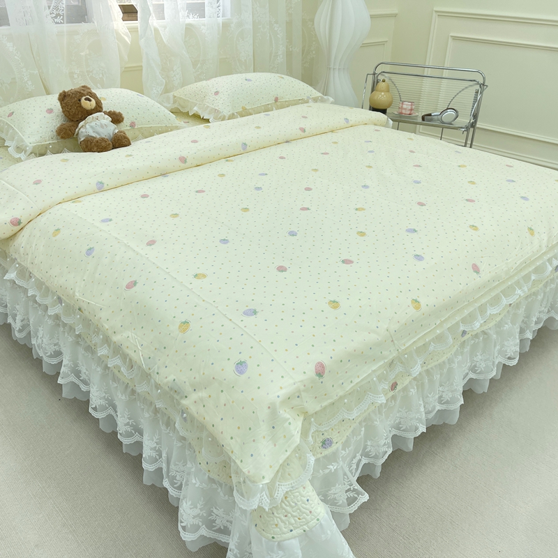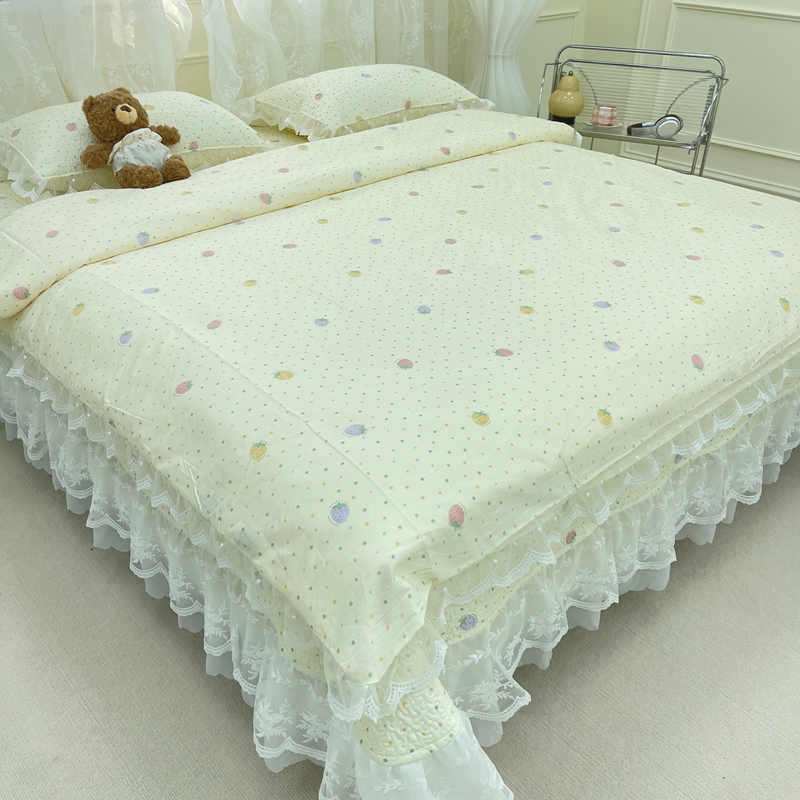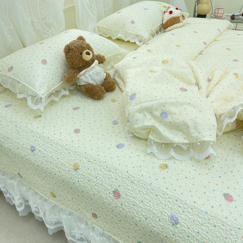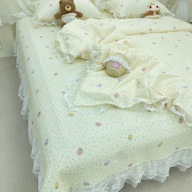 禧瑞谷 2025新款双层花边纯棉床盖雪纺蕾丝款纯棉床盖四件套 莓果点点