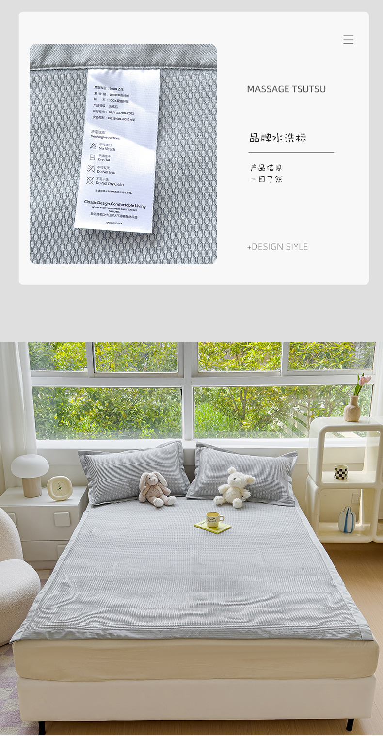 当前位置: 91家纺网 > 商品网购 > 床上用品 > 凉席 > 其他凉席 > 耀悦家纺 2026款100%乙纶凉席pe凉感华夫格凉席加厚三明治三件套床笠床席子枕套 云灰-床笠款