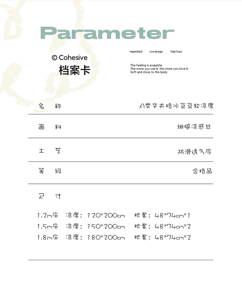 180x200cm凉席+枕套一对 | ¥115.00 |