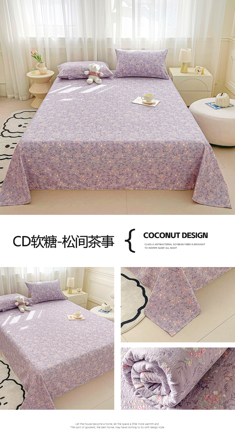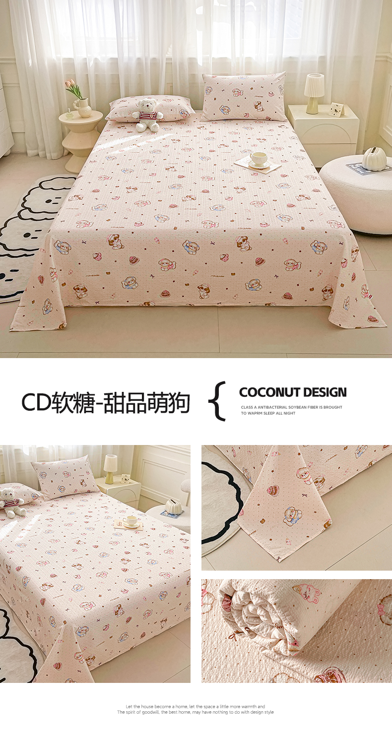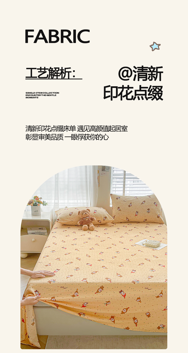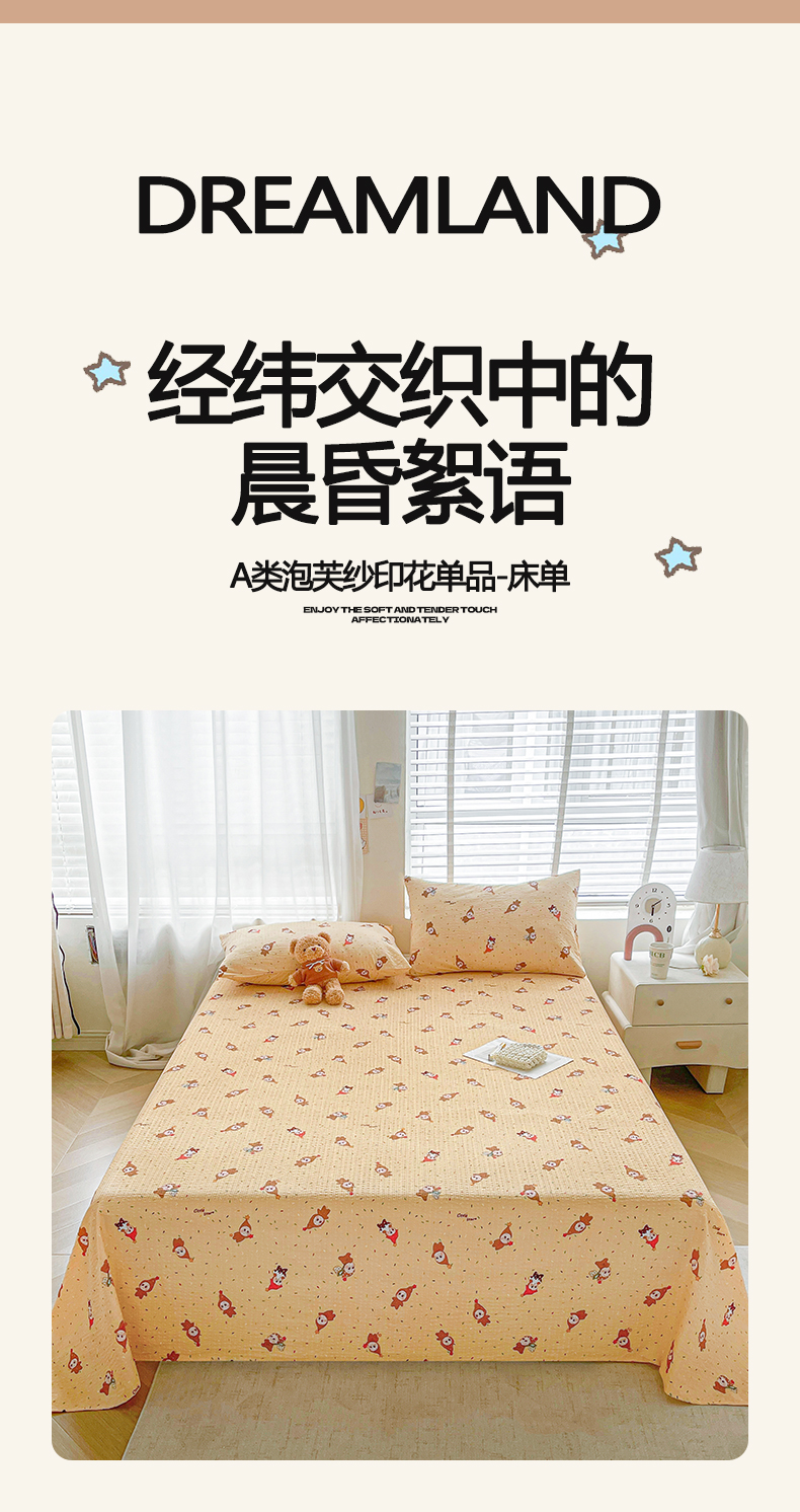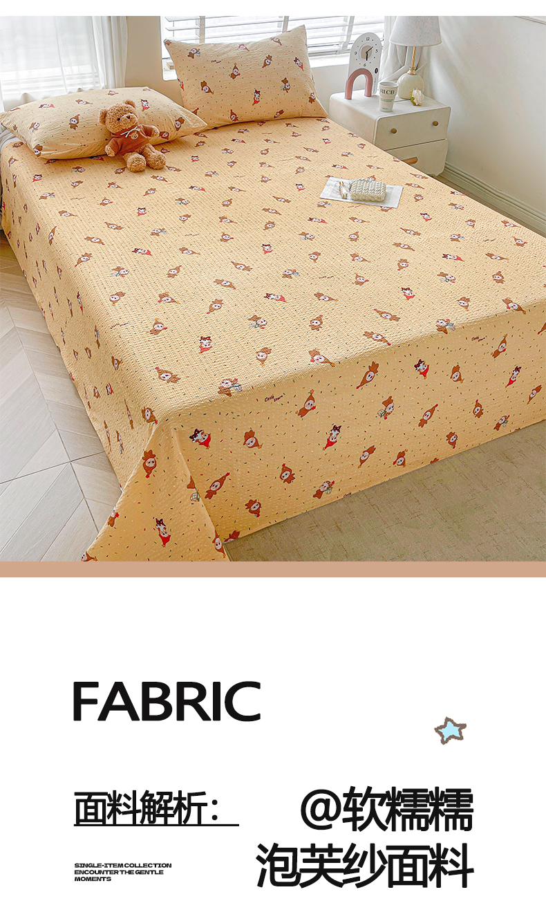 • 91家纺网 家纺一手货源 找家纺 几禾 2026新款高克重泡芙纱~印花款(单床单)-110g CD-软糖 星星糖豆