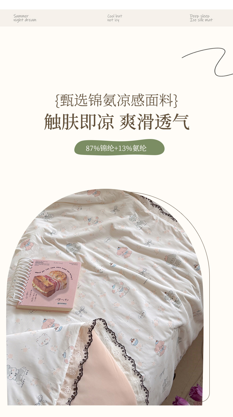 (总)Sweet dreams甜梦 2026新款A类蕾丝花边锦氨凉感夏凉被,花儿狗,mm线,春野碎花,林野小物,帽子萌萌狗,萌兔蝴蝶结,小幸运,星星木马,樱桃小熊,组合